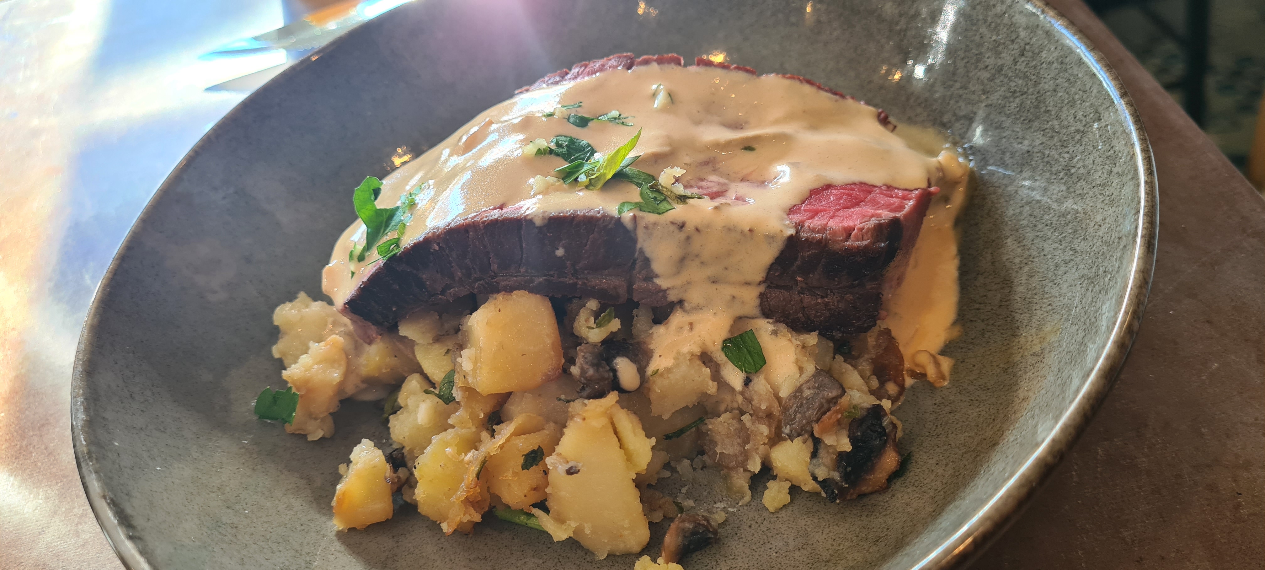 Quelle déception pour ce dîner !! un burger qui n'a de gastronomique que le nom..une sauce industrielle, un petit steak, et un fromage insipide..et j'avais faim après le plat..Après ce repas, c'est sûr, je peux dire que l'on mange mieux chez soi. Service correct, sans plus. Salies/Salat ne s'arrange vraiment pas et je comprends que tout soit désert