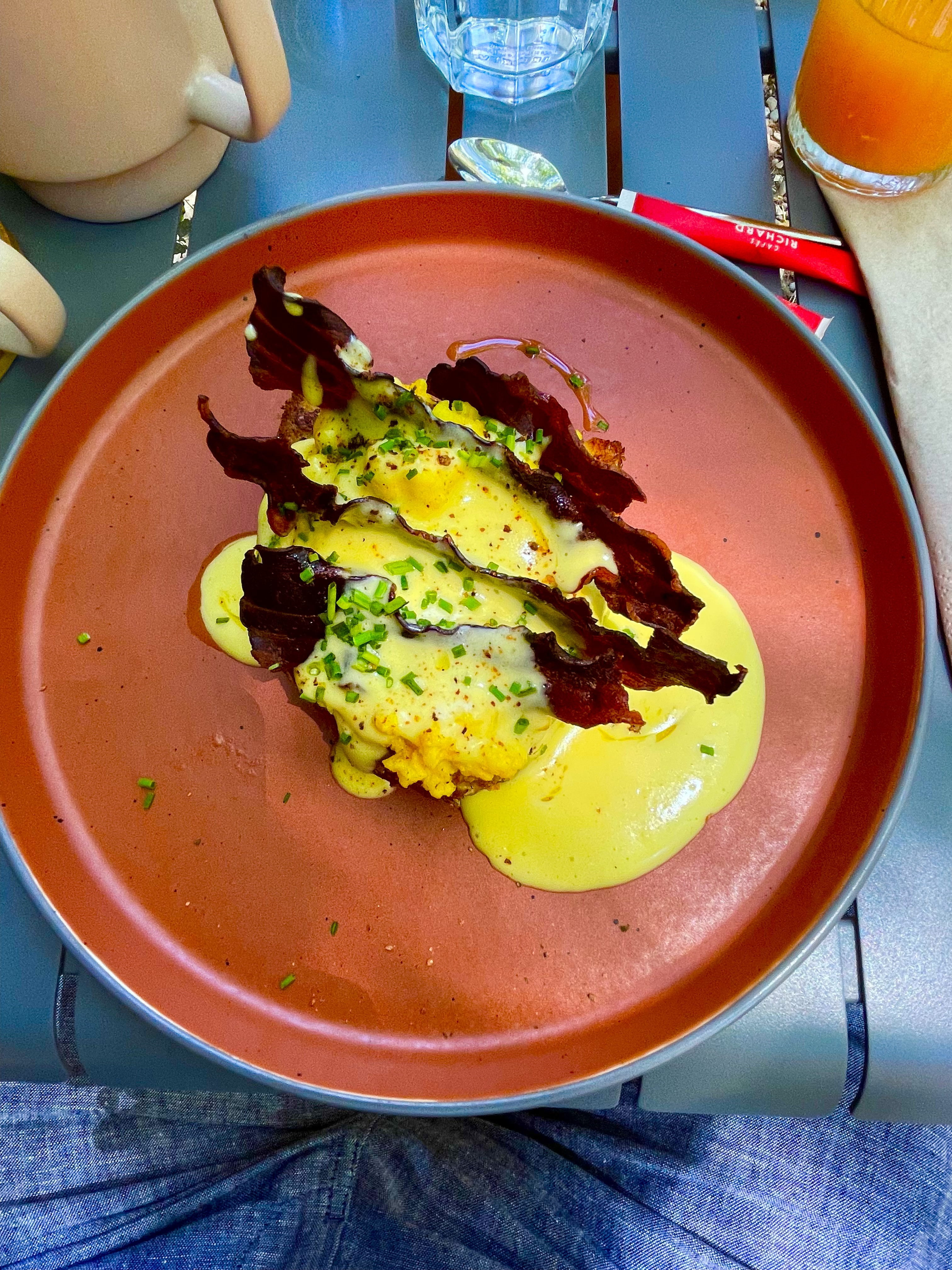 Brunch delicieux dans un grand cour tout calme et serveuse très sympa !