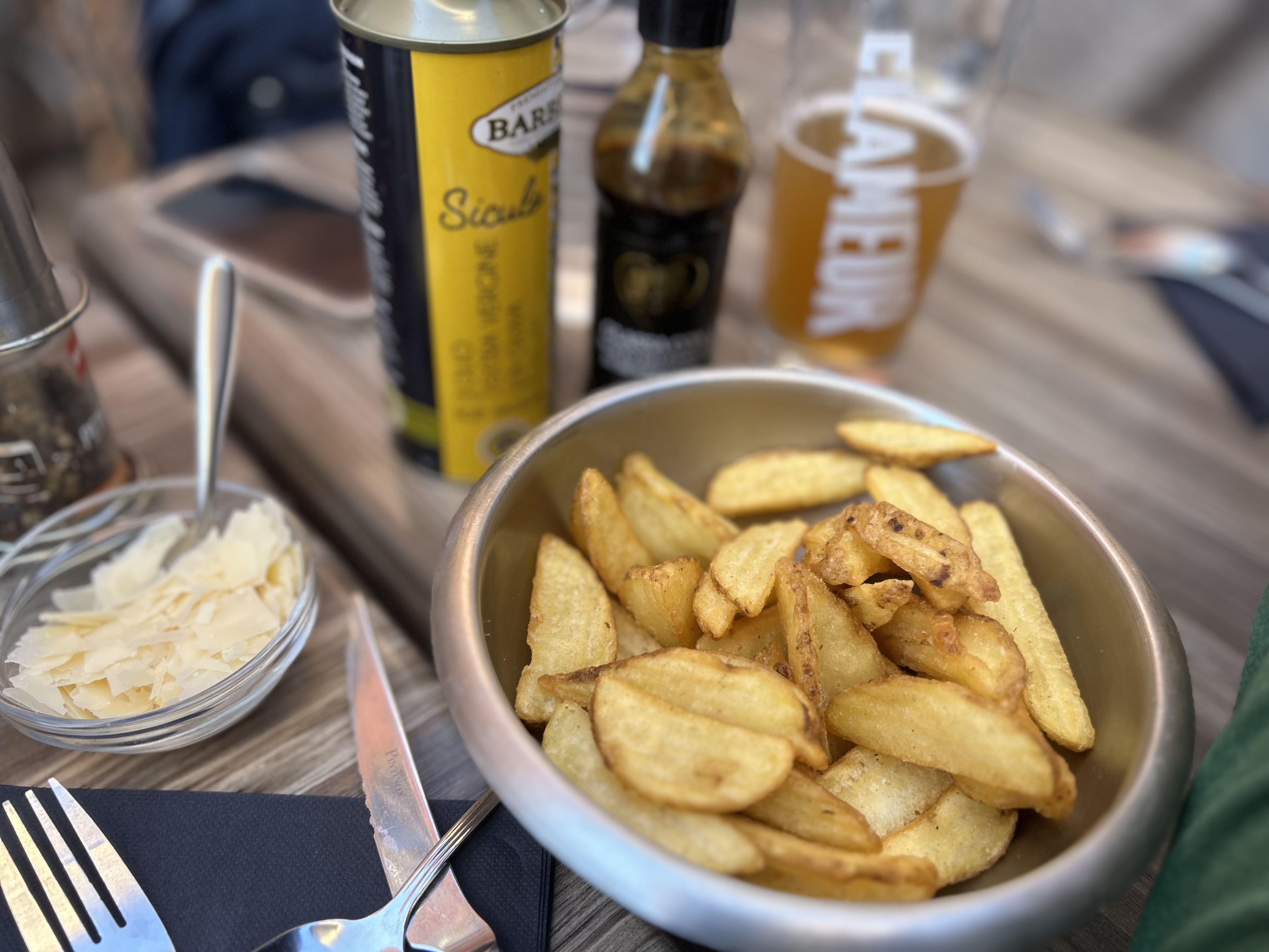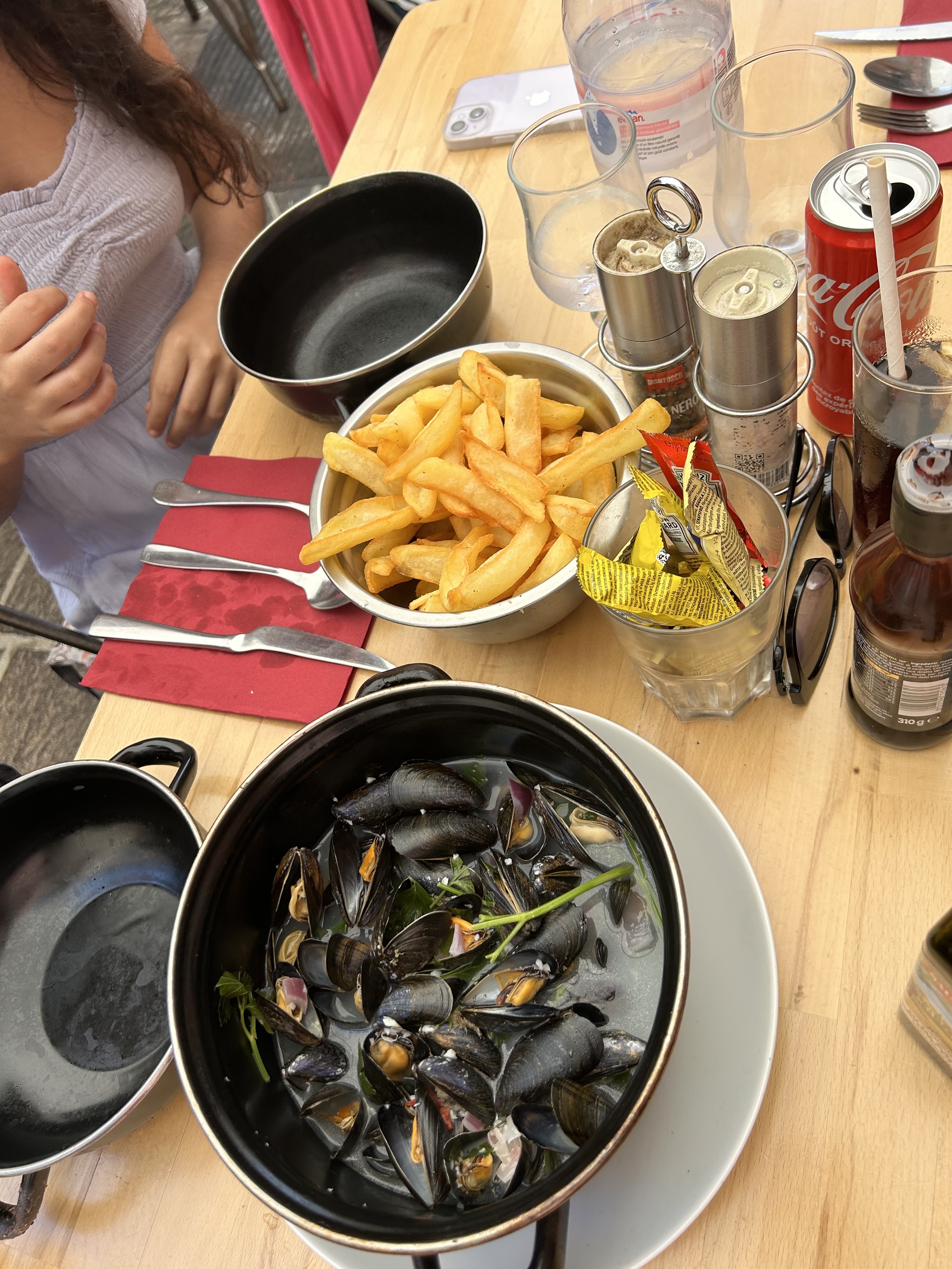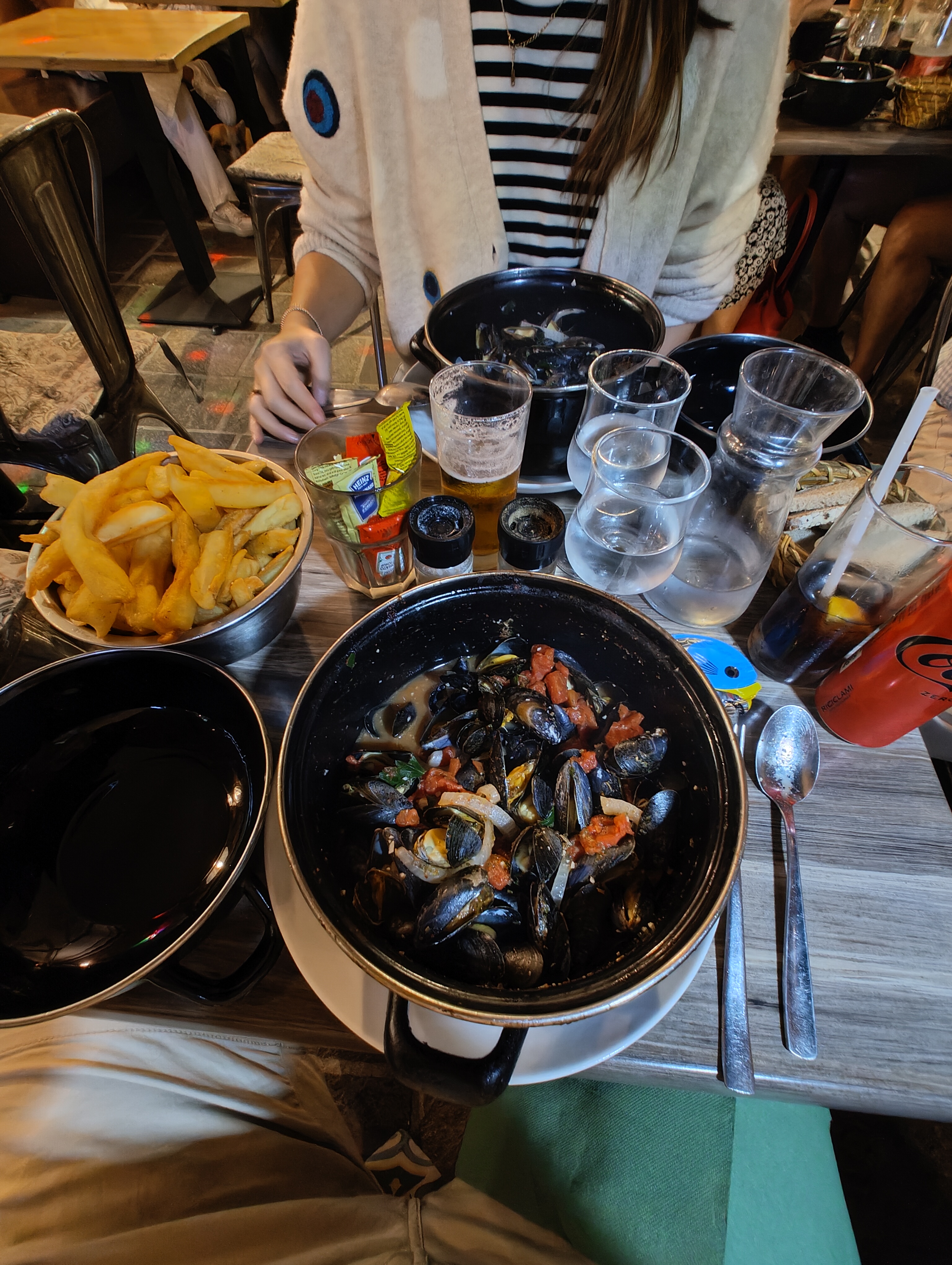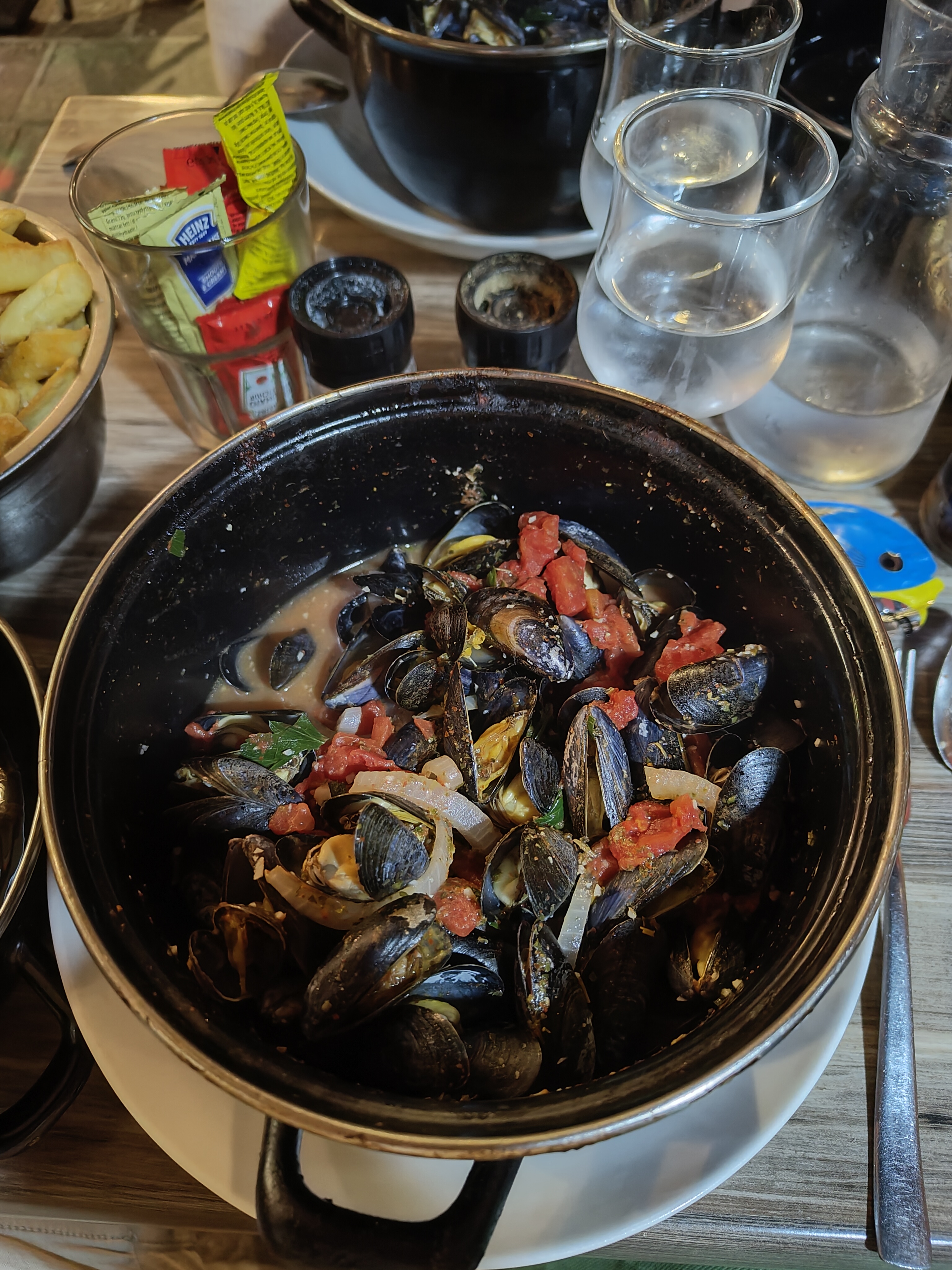 J'ai eu des moules marinières. Délicieux! Frites pour 3 personnes minimum. Et un excellent prosecco !!.
