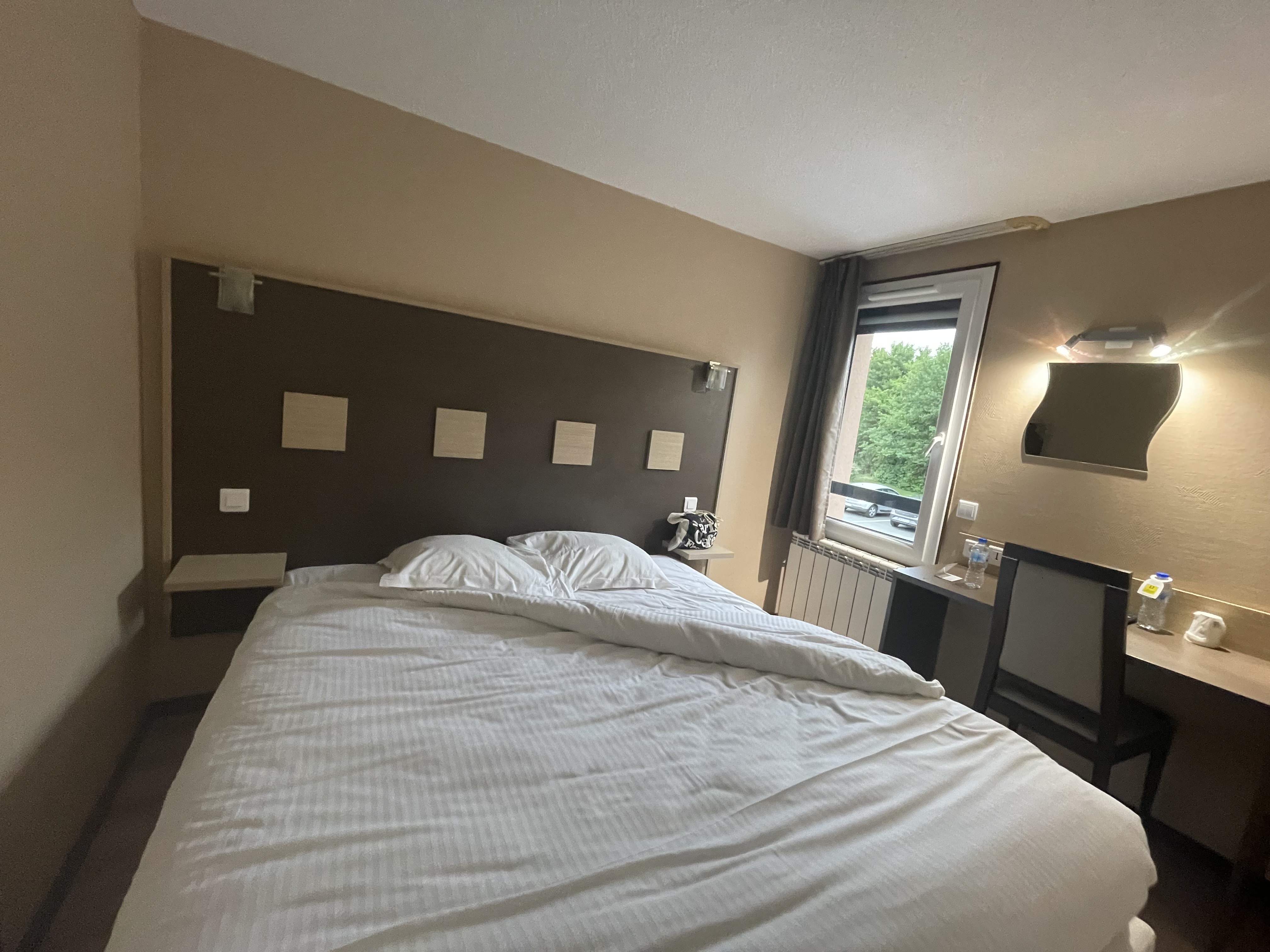Hotel beaucoup trop cher pour les prestations. La première nuit nous nous sommes retrouvés dehors car après 21h le lecteur de carte ne fonctionne pas. Avec deux enfants en bas âge ce n'est pas terrible. Monté dans les chambres nous sommes justes au dessus du quai de livraison.EN soit attendez vous à être réveillé à 8h avec les livraisons. L'hygiène en premier abord est correct mais arrivé dans la salle de bains cela ce gate. Trace de moisissures dans la douche certes estomper mais quand même présente. Par contre mon fils en prenant sa douche enlève le capuchon et la beurk c est noir et il y a des cheveux,😡. Bref la literie est bonne. Nous souhaitons regarder la télé en famille et la prise de tête. Il n'y a pas toutes les chaînes et celle-ci sont en désordre. En soit rien de dramatique mais au cumul cela fait beaucoup surtout quand cerise sur le gâteau ils ont voulu nous faire payer le petit déjeuner de notre fille alors que celui-ci est gratuit sur leur site pour les moins de 12ans. Bref cette hôtel est beaucoup trop cher pour les prestations surtout qu'en plus le parking n'est pas gardé ce qui à permis à des fêtards de faire la java entre 3h et 4h du matin avec la sono à fond et l'alcool à foison. Non passé votre chemin.