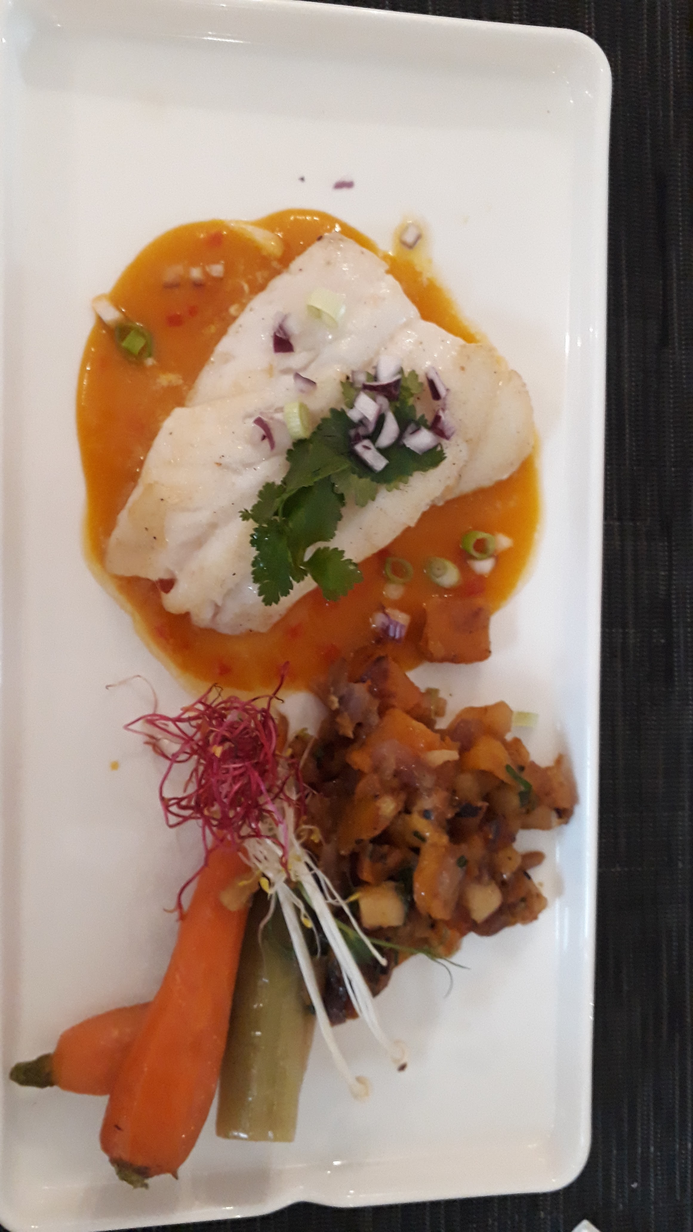 Nous y avons dîner le 28 août avec mes enfants et franchement ça vaut le détour cuisine française avec une touche asiatique légère trop bon le chef et son équipe sont super accueillants à l écoute Service nickel mon fils n'a pas été fan du sucré salé mais à réussi à manger un peu par contre ma fille et moi avons adoré nous nous sommes régalés je recommande vivement une très bonne adresse je ne manquerai pas d'y revenir