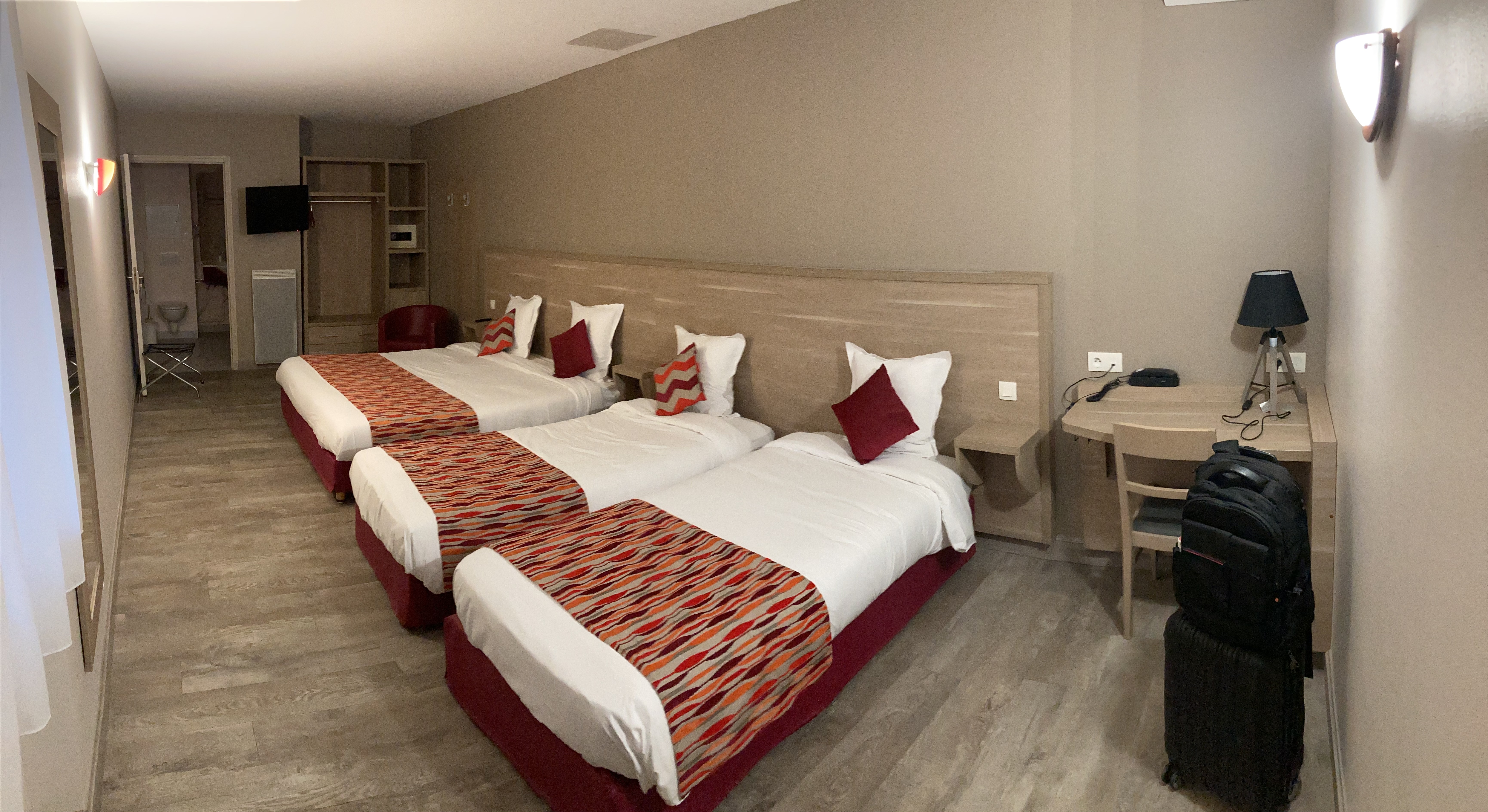 Avoid this place! A 85 Euros hotel offering 40 Euro service. I stayed here on the recommendation of a friend and was very disappointed. The rooms are basic and need upgrading. Also, the management doesn't leave bottles of water, a kettle and tea/coffee for guests (which is now a basic service almost everywhere these days). My advice: (1) either stay in an Ibis (or similar) or (2) airbnb (there are plenty of places close by). I didn't eat in the restaurant because I arrived on a Sunday. Evitez cet endroit ! Un hôtel à 85 euros offrant un service à 40 euros. J'ai séjourné ici sur la recommandation d'un ami et j'ai été très déçu. Les chambres sont basiques et ont besoin d'être rénovées. De plus, la direction ne laisse pas de bouteilles d'eau, de bouilloire et de thé/café pour les clients (ce qui est maintenant un service de base presque partout de nos jours). Mon conseil : (1) soit séjournez dans un Ibis (ou similaire) ou (2) airbnb (il y a plein d'endroits à proximité). Je n'ai pas mangé au restaurant car je suis arrivé un dimanche