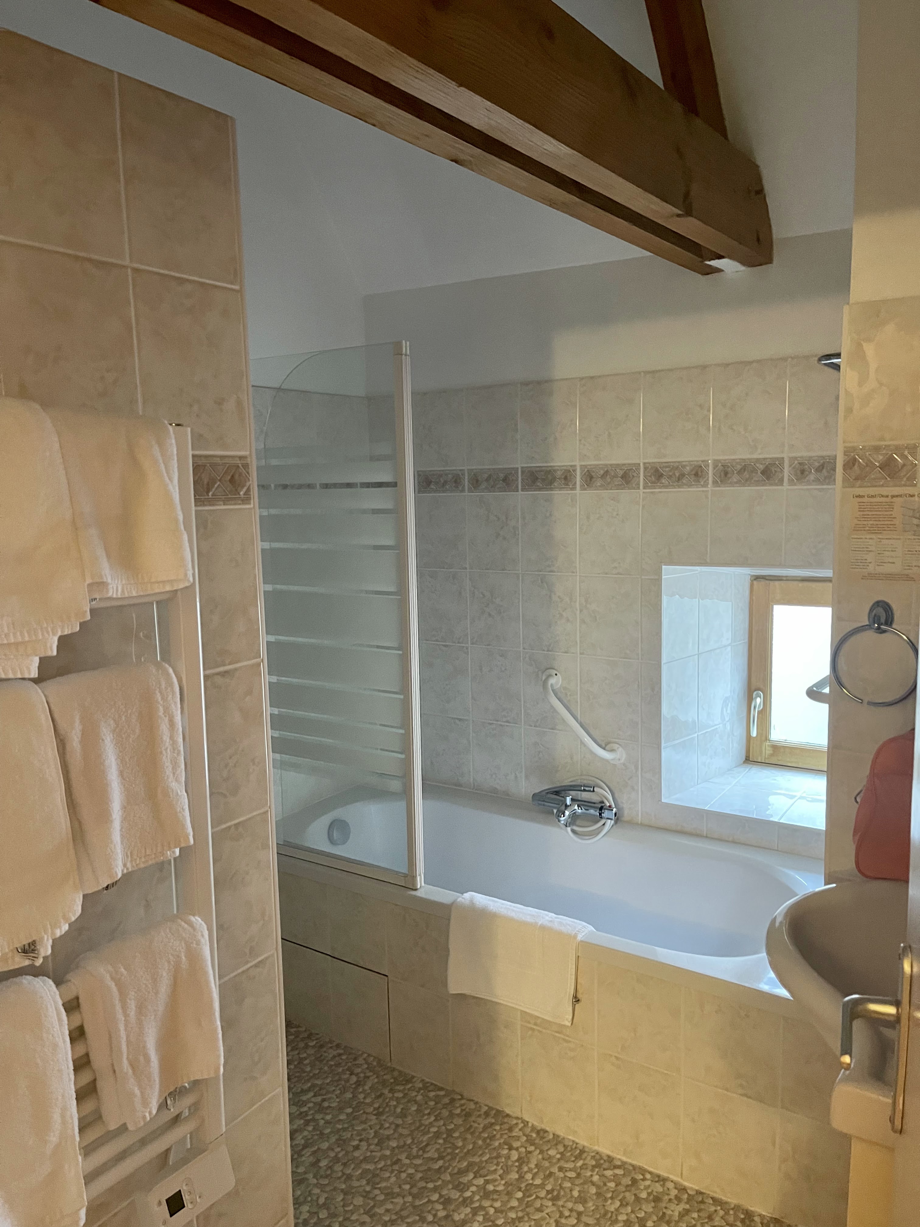 C'était mon troisième séjour dans cet hôtel. La première fois, il y a 13 ans, en famille, nous avons trouvé cet hôtel par hasard et avons passé un séjour très détendu après une longue journée de voyage. En 2021, j'y suis retournée seule pour deux nuits et j'ai eu la chambre la plus mignonne avec une jolie vue, un repas trois plats au restaurant un soir et un repas brasserie l'autre soir. Cette année, je suis resté avec mon conjoint, nous avons visité le château, nous sommes promenés le long de la rivière et du village et il a également apprécié l'ambiance familiale et bienveillante. S'il y a une toute petite critique, je dirais que dans le restaurant principal, le mobilier a été remplacé par du mobilier neuf, là où j'ai préféré les beaux meubles authentiques. Dans l'ensemble, nous aimons l'atmosphère familiale, le personnel aimable, les chambres propres et charmantes avec de nombreux petits détails (café, eau, télévision, savons), la bonne nourriture et le charme authentique.