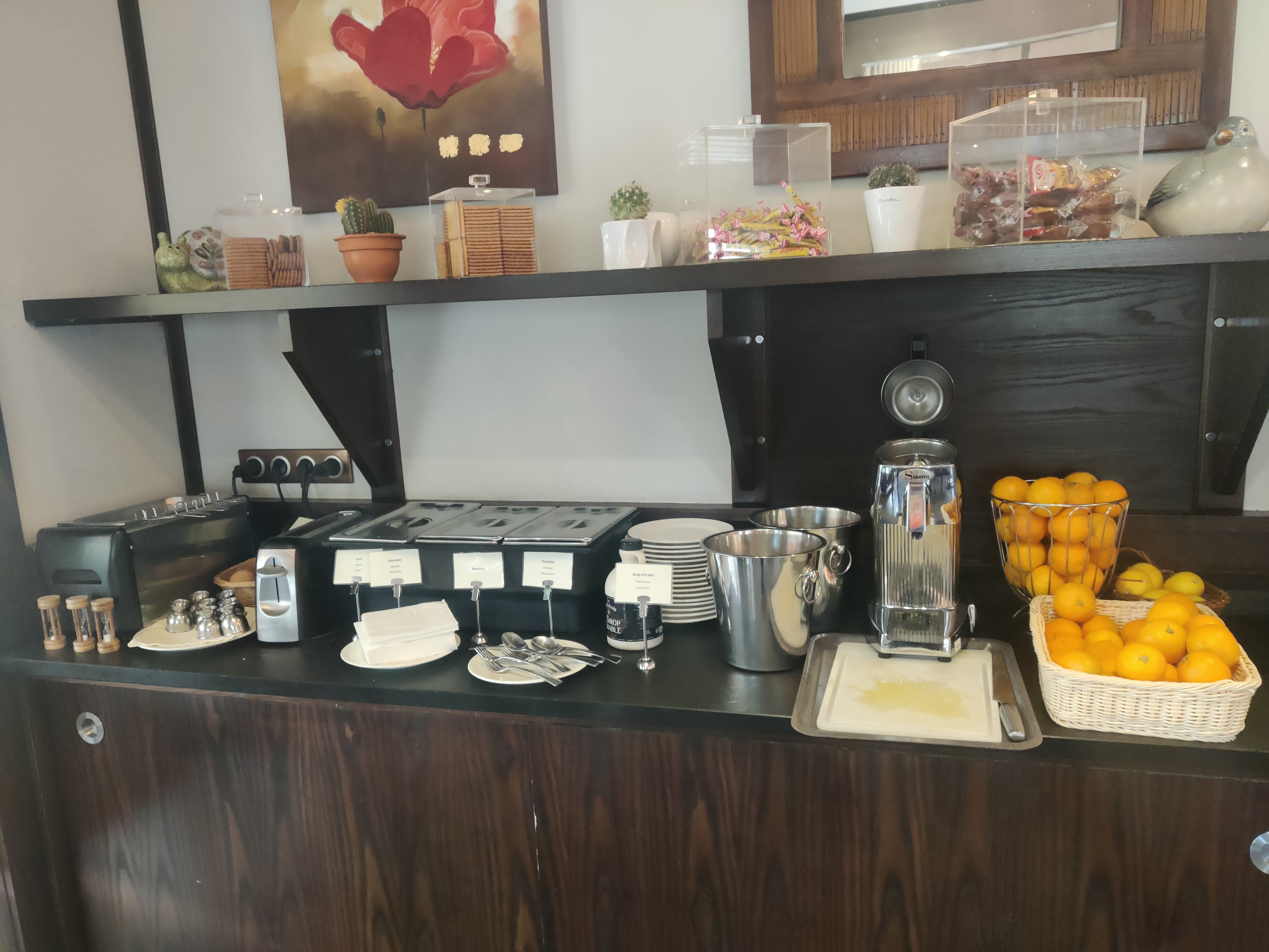 Malgré quelques détails de finition, et une porte de salle de bain cloquée par l'humidité, la chambre est agréable et la literie de qualité. Le petit déjeuner est très copieux, le service efficace. Je recommande.