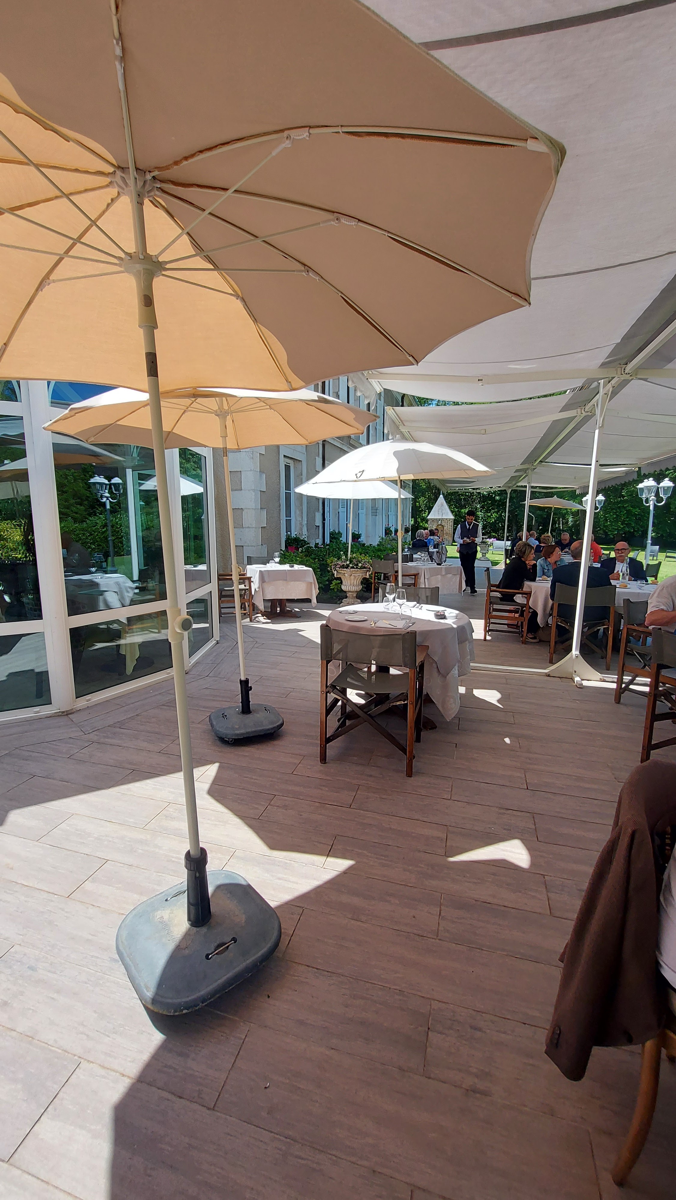 DOMMAGE TERRASSE ET PARC PAS AU TOP....... restaurant magnifique quand on arrive dans cette grande et belle allée.... dans l assiette bien.... service impeccable serveurs aux petits soins ..... jolie terrasse mais en semaine ne pas s'y mettre passage du tracteur toutes les 10 mn, hyper désagréable ,bruyant, je ne comprends pas que l'on ne respecte pas les clients a l heure des repas il y a pourtant des horaires spéciaux pour la tonte et le bruit..... idem , la semaine dernière sommes arrivés a 12H 30 le jardinier arrosait devant la porte d 'entrée il a fallut attendre qu'il finisse pour entrer, pareil ce ne sont pas des heures pour arroser..... derrière le restaurant un parc avec des salons de jardins , très bien mais on ne peut pas s' y installer aucun parasol,aucun coussin (idem voir photo du site ) dommage cet endroit pourrait etre magnifique il ne sert strictement a rien ,juste pour la déco on ne peut pas prendre l'apéro,le café ,ce détendre apres le repas ,ca ce n'est pas possible DOMMAGE.......