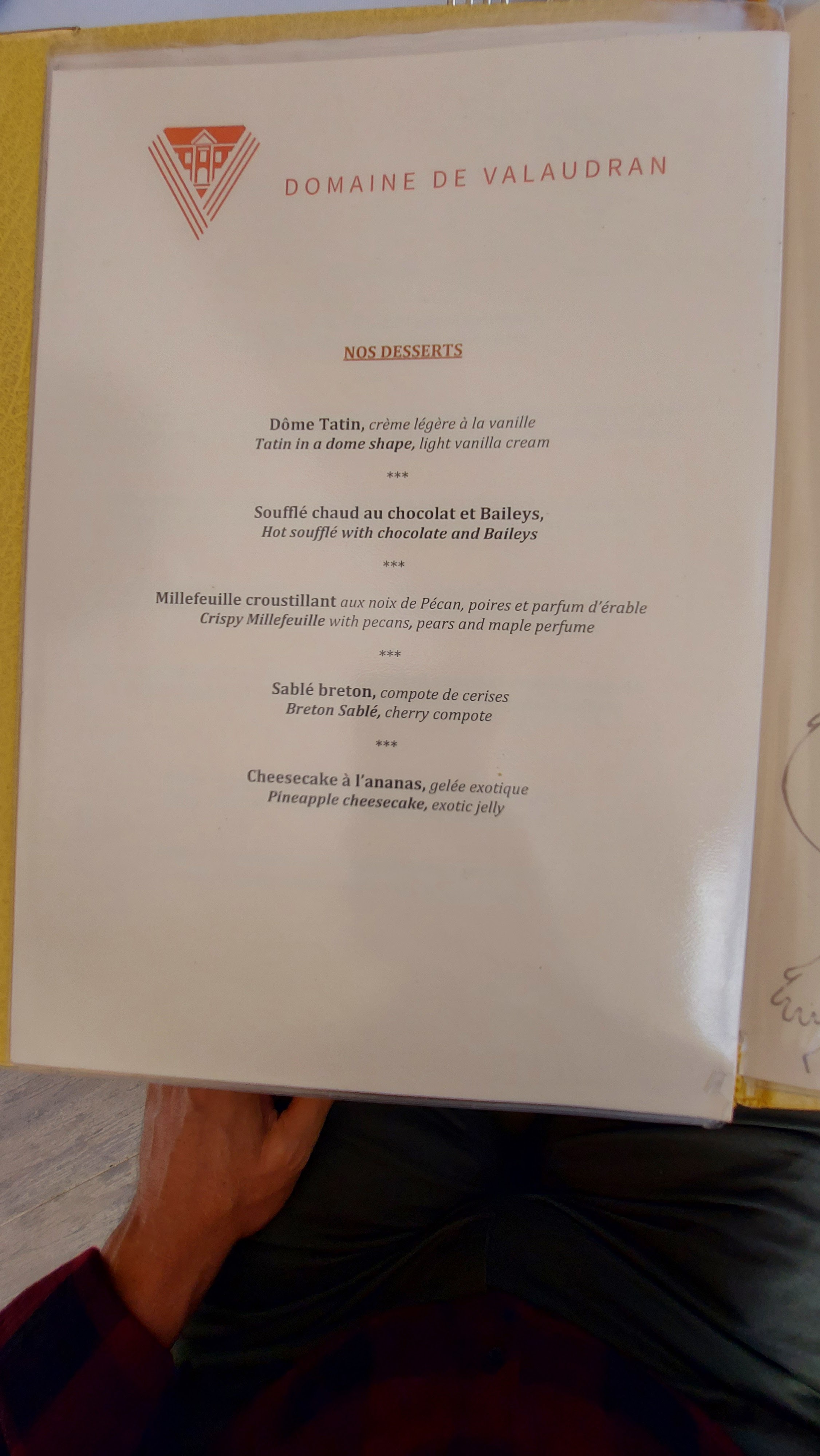 Un des meilleurs dîner : excellente chartreuse et sublime poires confites à la cardamonne. Remarquable Sancerre rouge Bourgeois 2018 Nous reviendrons