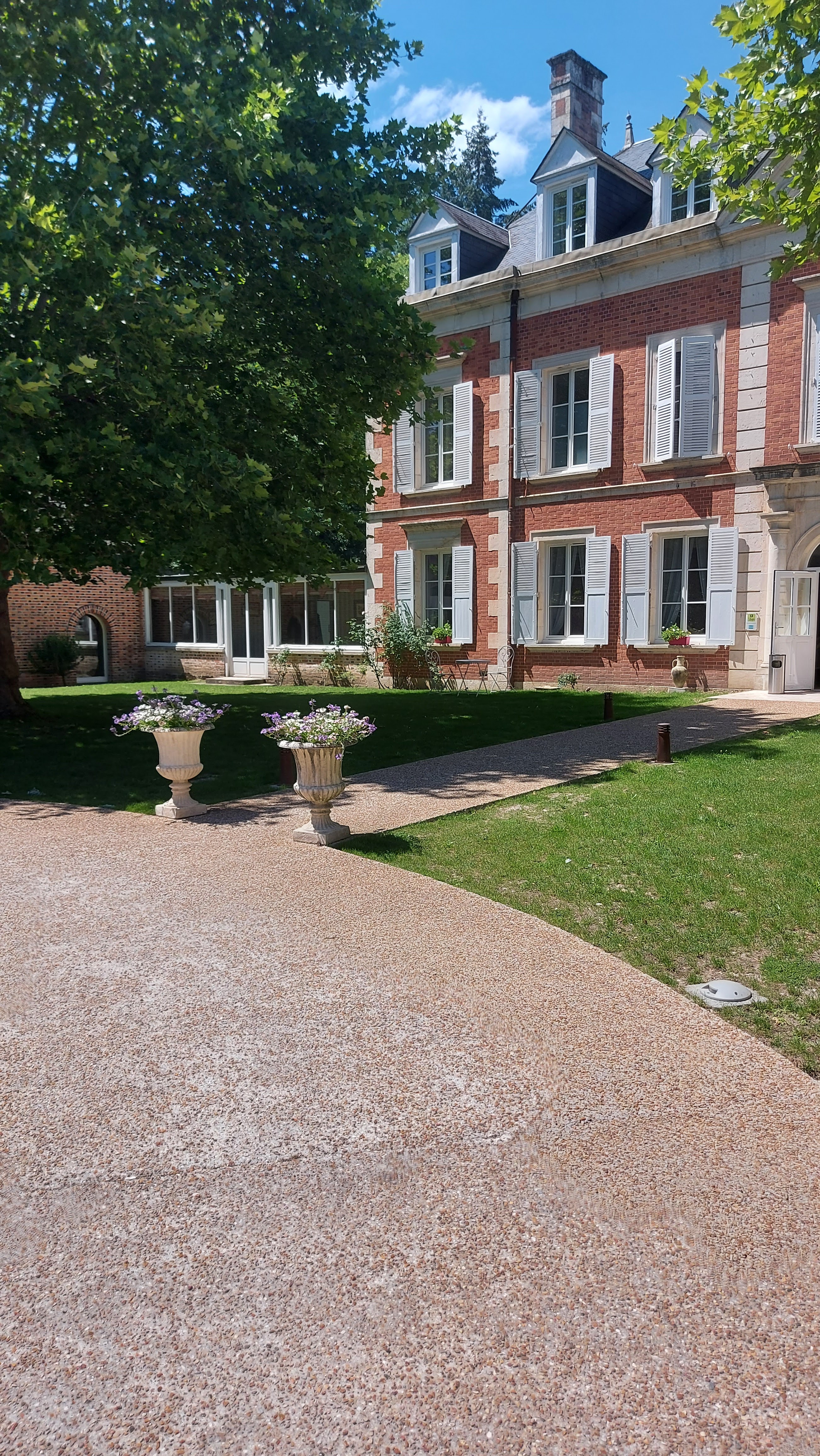 Nous y avons séjourné deux nuits de passage en France, avec notre bébé et notre chien. Tout le monde y a trouvé son compte. Nous n'avons pas été déçu, l'endroit très calme et reposant, un joli parc à l'avant et très bel espace pelouse et terrasse à l'arrière. Piscine au top. Petit déjeuner bon arpprot qualité prix. Dame de l'accueil très serviable et fait de bons Spritz. Chambre sous les toits propre et correcte (nous étions dans l'aile latérale), et malgré les température extérieures très élevés nous n'avons pas eu trop chaud la nuit grâce à l'airco. Petit bémol pour le frigo en panne, mais c'est un détail.
