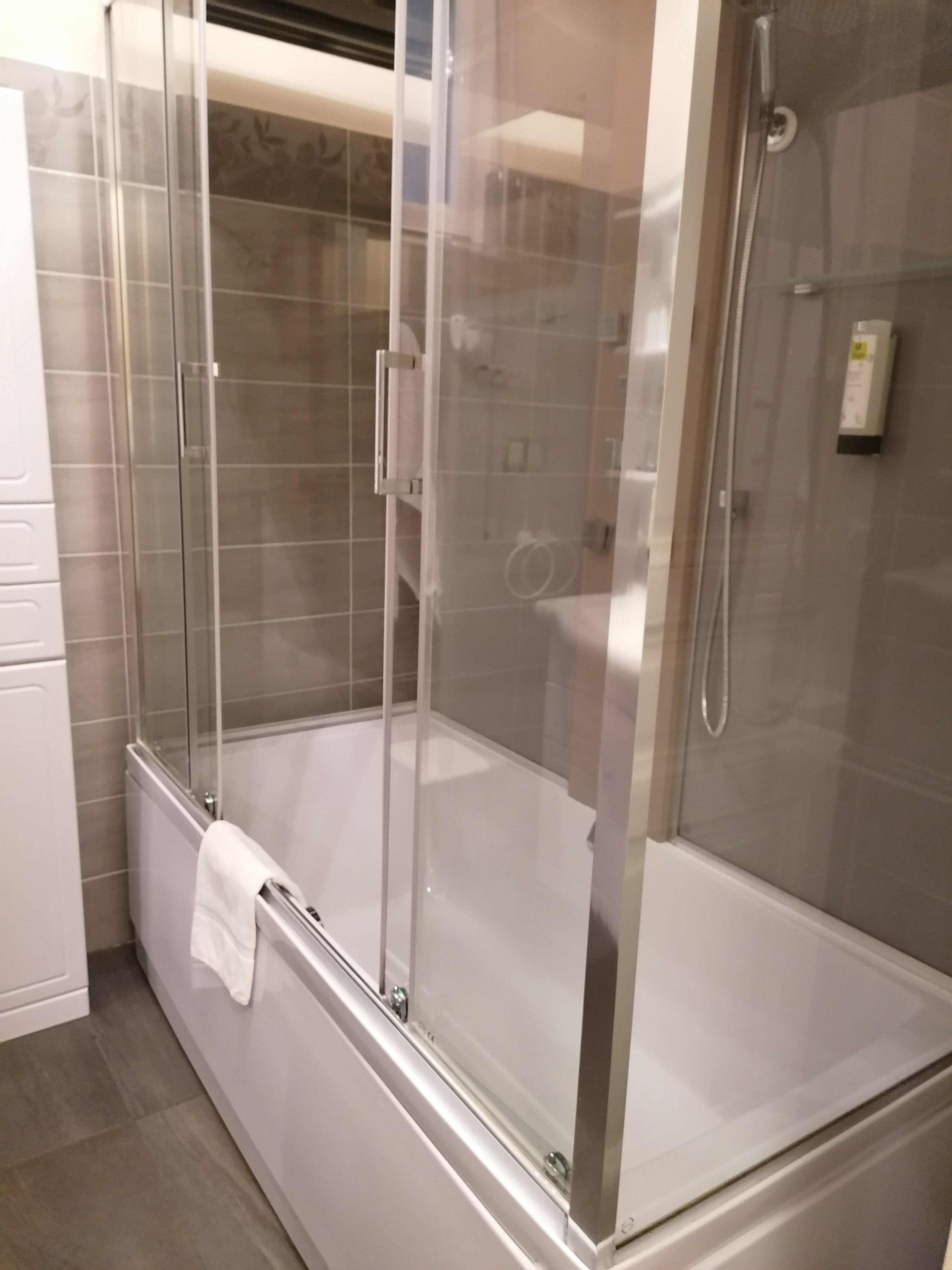 Le vieux bâtiment montre sa splendeur et est vétuste, tout comme évidemment toute la ville thermale. Nous avions la chambre 103. Très spacieuse, très bien équipée ! Recommandé!