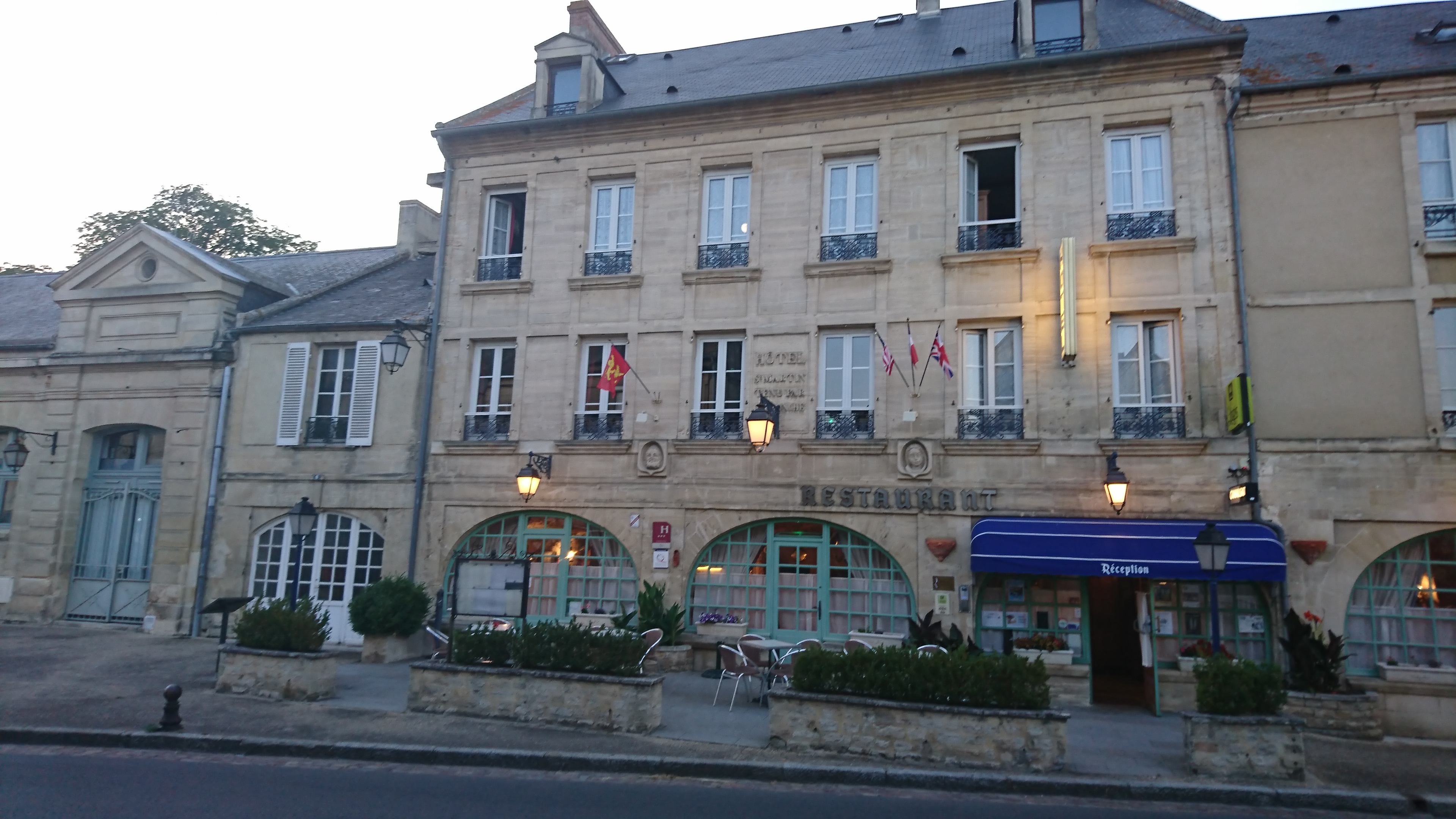 Bien placé pour visiter les plages du débarquement! Les repas très bons, 3-4 repas différents et rien a dire. Le service impeccable, très sympathique et serviable, bien à l’écoute. Le personnel s’est souvenue de nos demandes. Les chambres propres et calmes