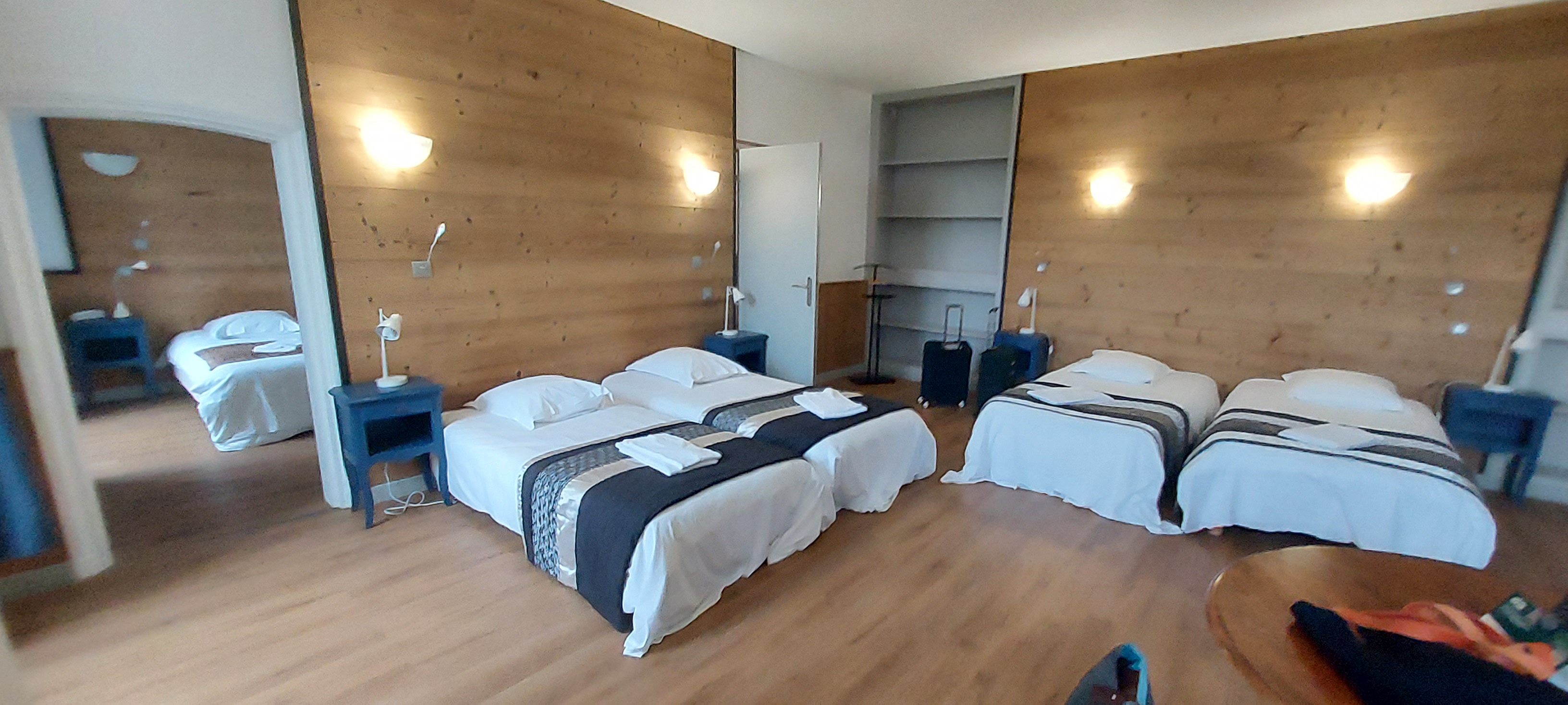 Aucune insonorisation dont bruyant, petit déjeuner trop élevé 8,50 € non artisanaux ( enveloppé comme à l'hôpital ) très belle vue côté montagne et belle établissement .