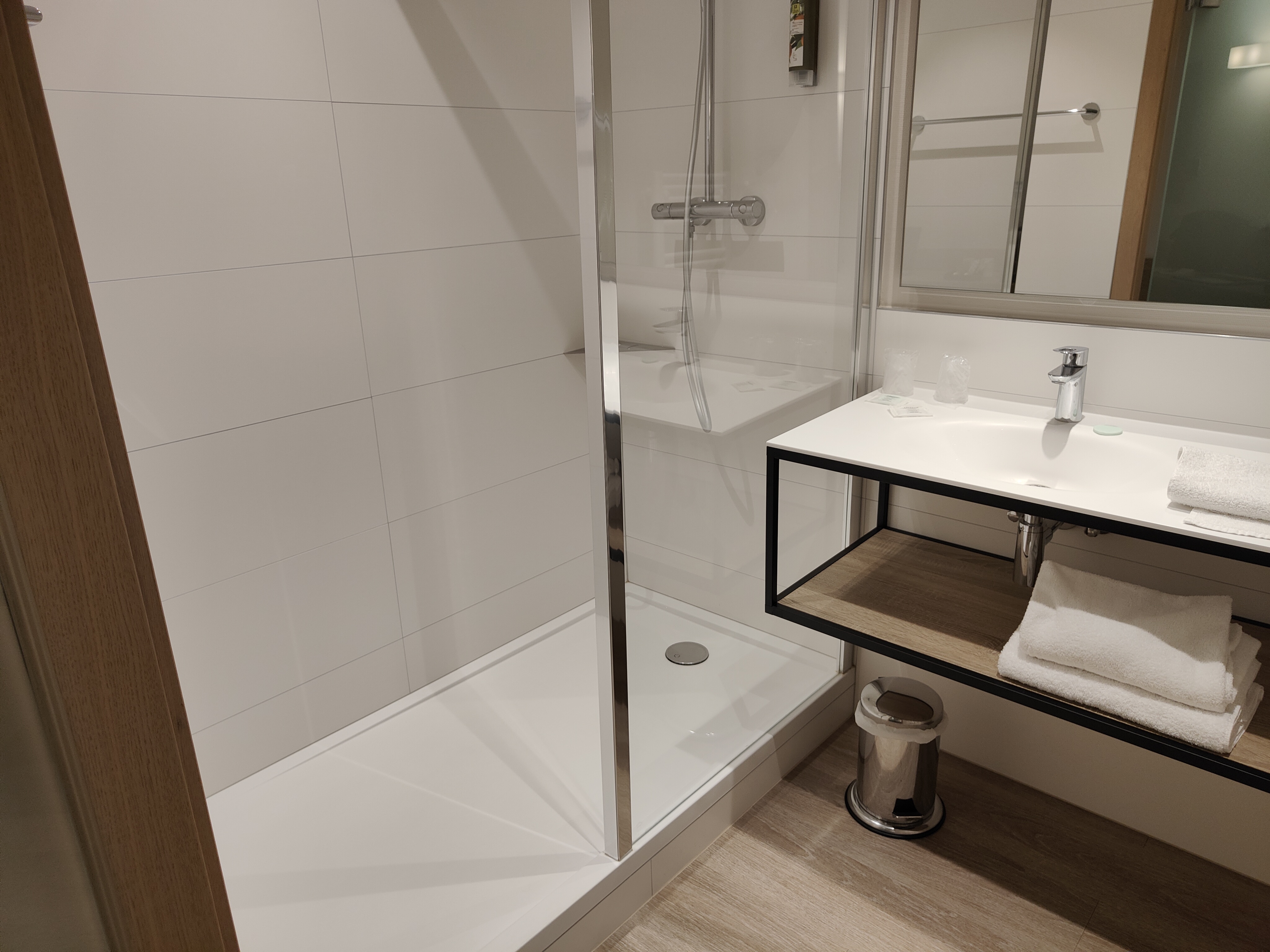 Les chambres sont design, spacieuses, propres et très bien équipées. Il y a un parking avec 2 bornes de recharge pour véhicules électriques. Tout est très calme. Il y a aussi un restaurant sur place.