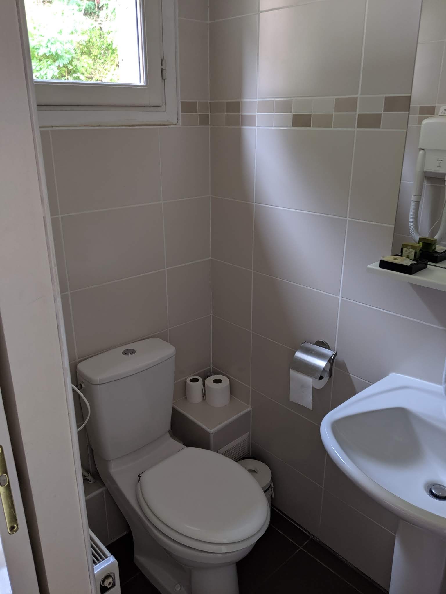 Chambre correct, salle bains chaotique avec un lavabo quasi sur les toilettes, une pomme de douche qui fait ce qu'elle veut. Insonorisation insuffisante, les ronfleurs s'entendent trop bien, quand à ceux qui discutent dans les couloirs en marchant bien lourdement, vu le plancher, le réveil en pleine nuit est assuré. Dommage car hôtel bien placé, manque l'agréable...