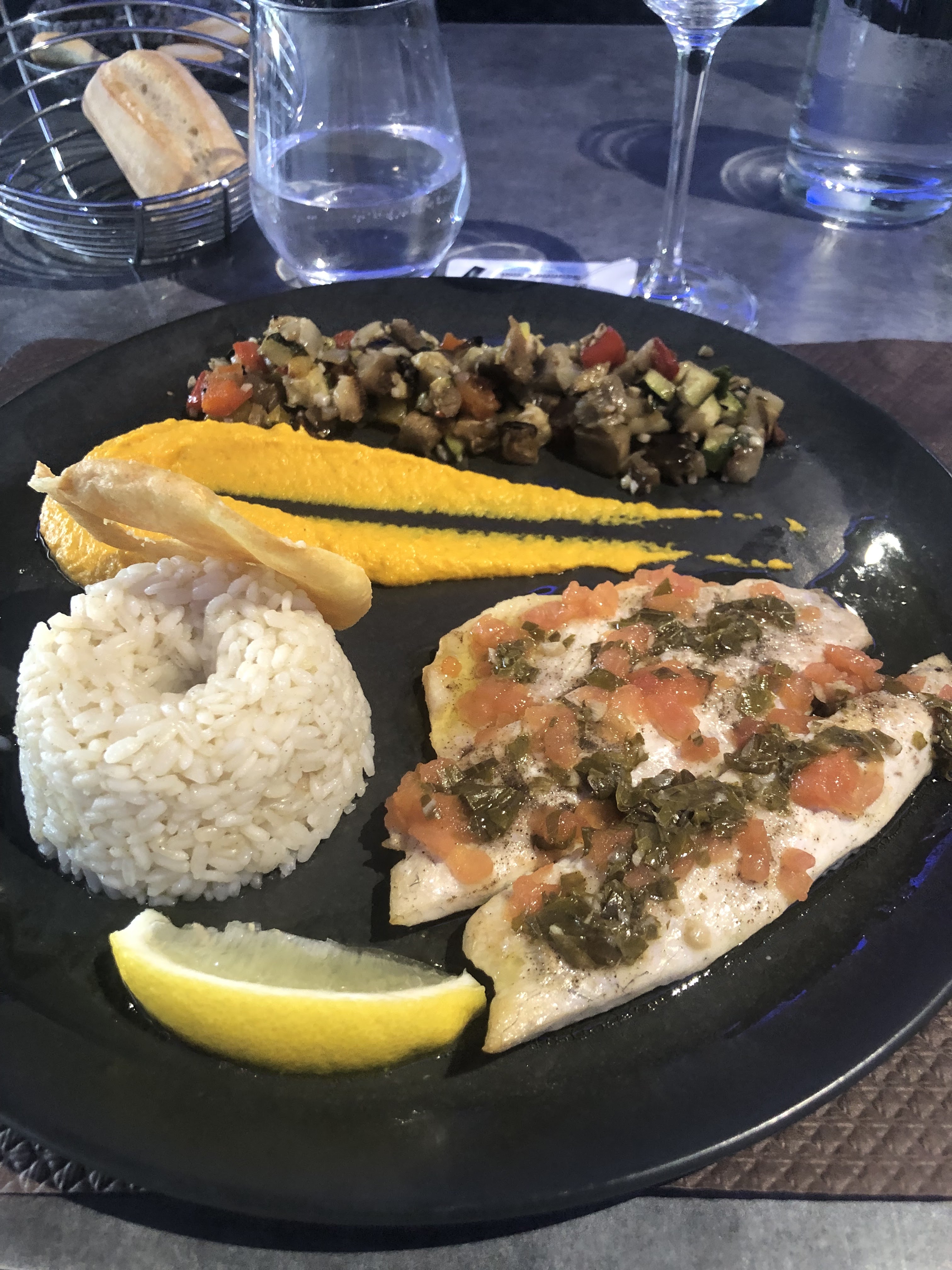 Nous avons mangé au restaurant tout était très bon personnel souriant et attentionné Nous y reviendrons je recommande