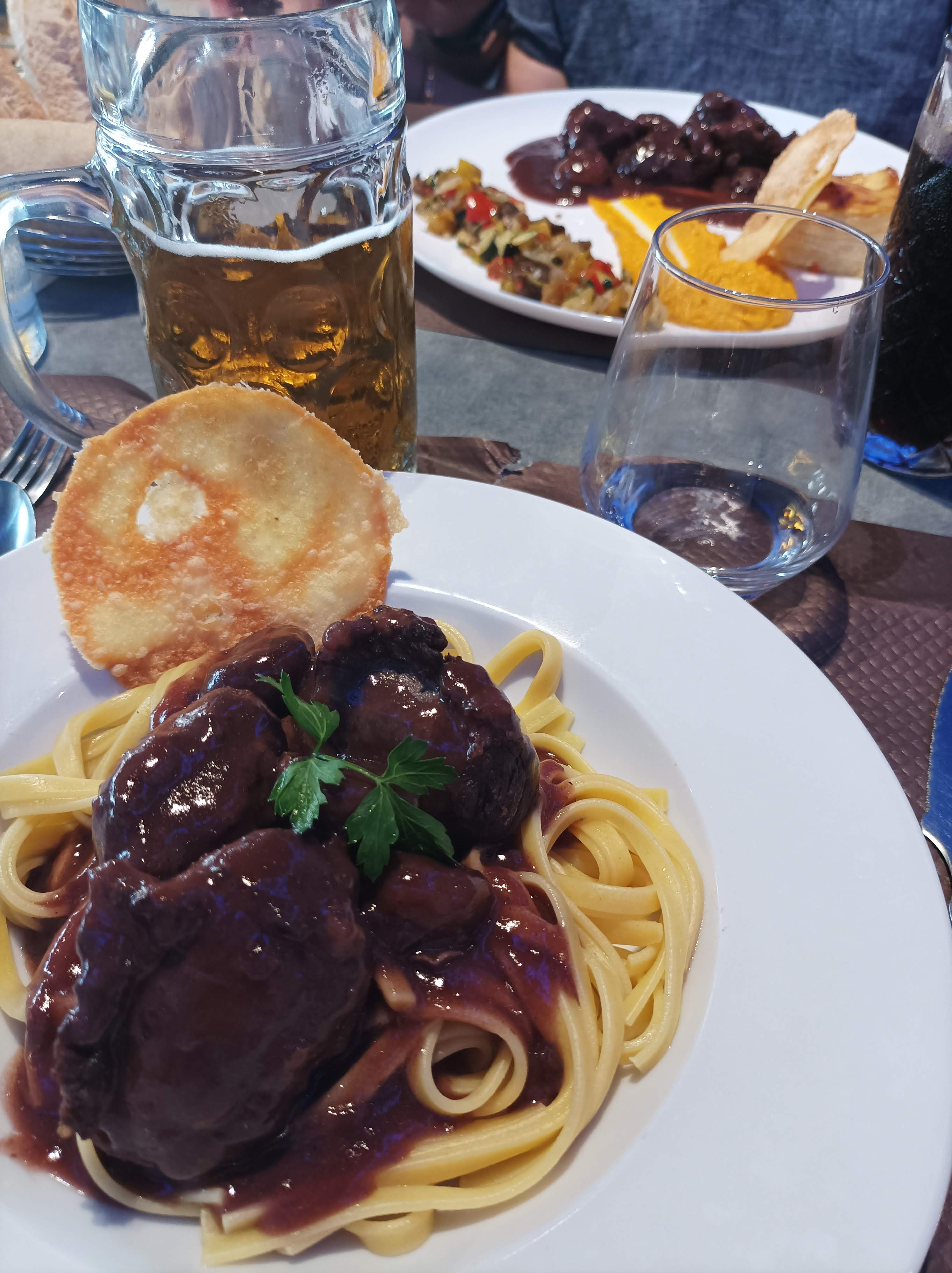 Super resto Belle vue depuis la terrasse Un plat de pâtes délicieux dans un menu copieux et pas cher ! Et le clou du spectacle : le parmesan râpé par le serveur avec un moulin sur les pâtes devant nous ! 🤦🏼♂️😂