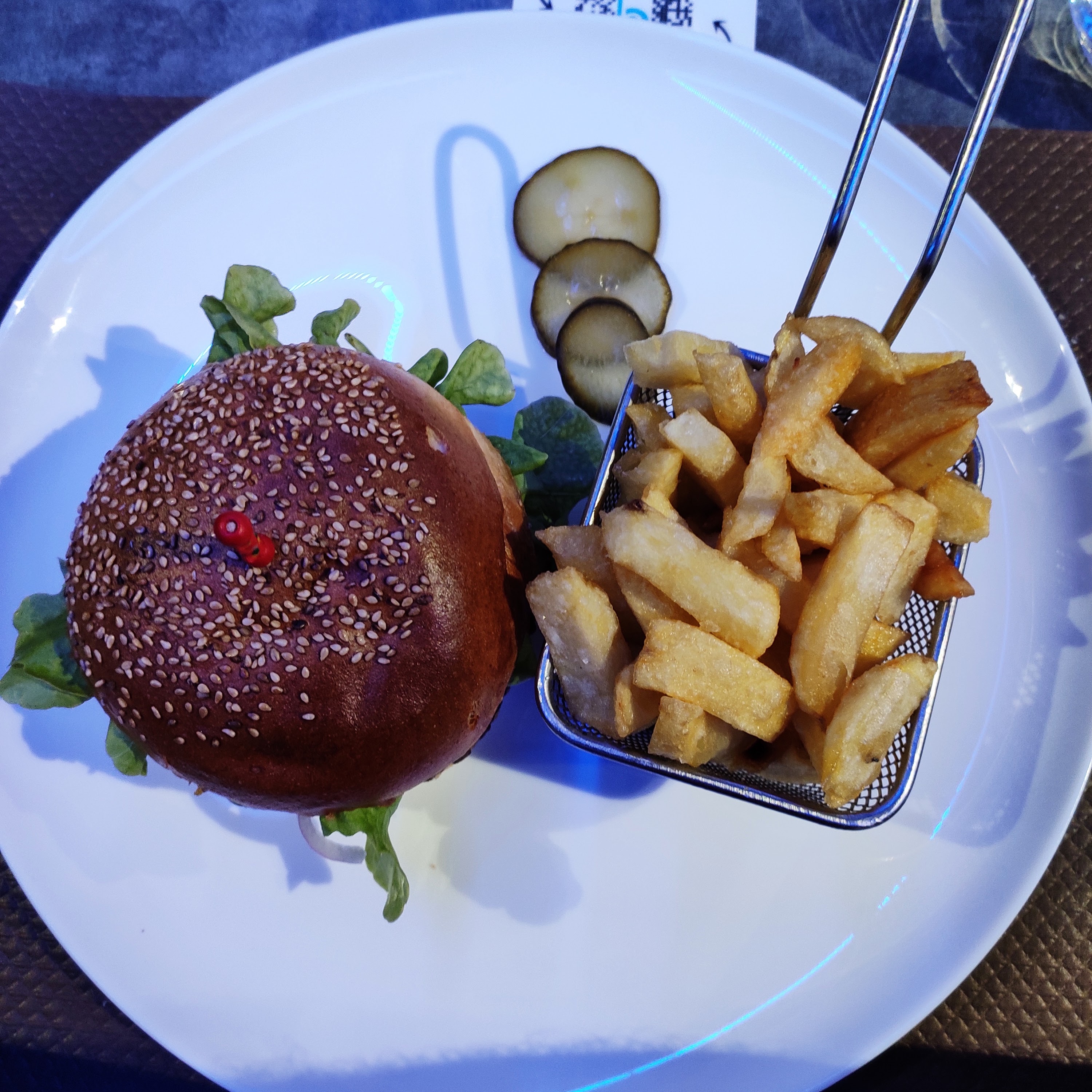 Nourriture fade et absolument pas faite maison contrairement à ce qui est indiqué sur la carte, camembert frit n est rien d autre que des tranches d une marque industrielle, salade de chevres chauds on s attend a du chevre sur du pain croustillant mais c est des beignets de chevres digne de leader price, on demande un burger saignant et la viande est trop cuite car décongelée. Même la sauce salade est industrielle... Par contre cadre et service très agréable.