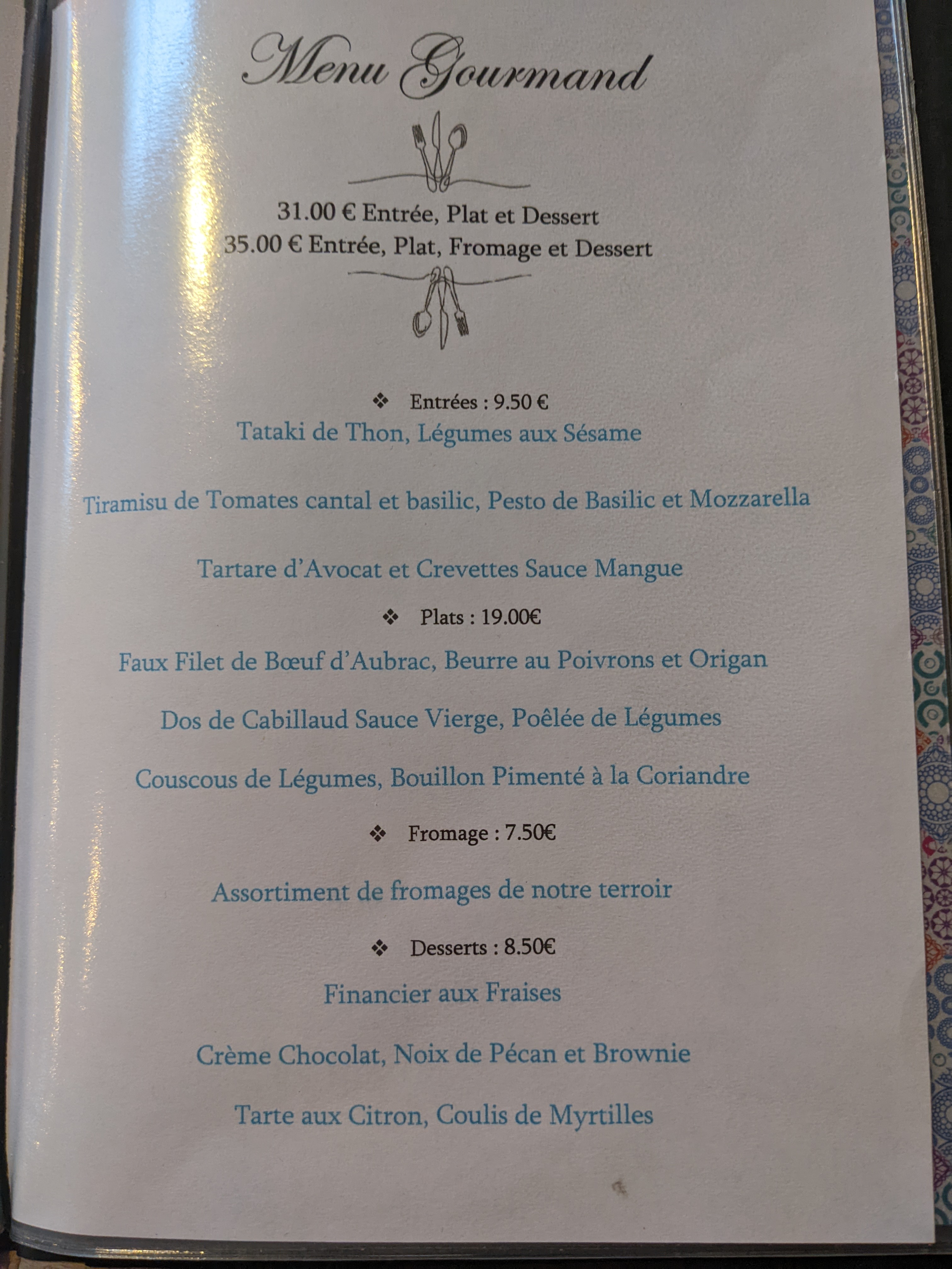 Acceuil sympa, rien à dire, la qualité était au rendez-vous, des plats goûteux, le cadre magnifique et la déco 👍 Entrée, plat, dessert 29€ Pas de carte