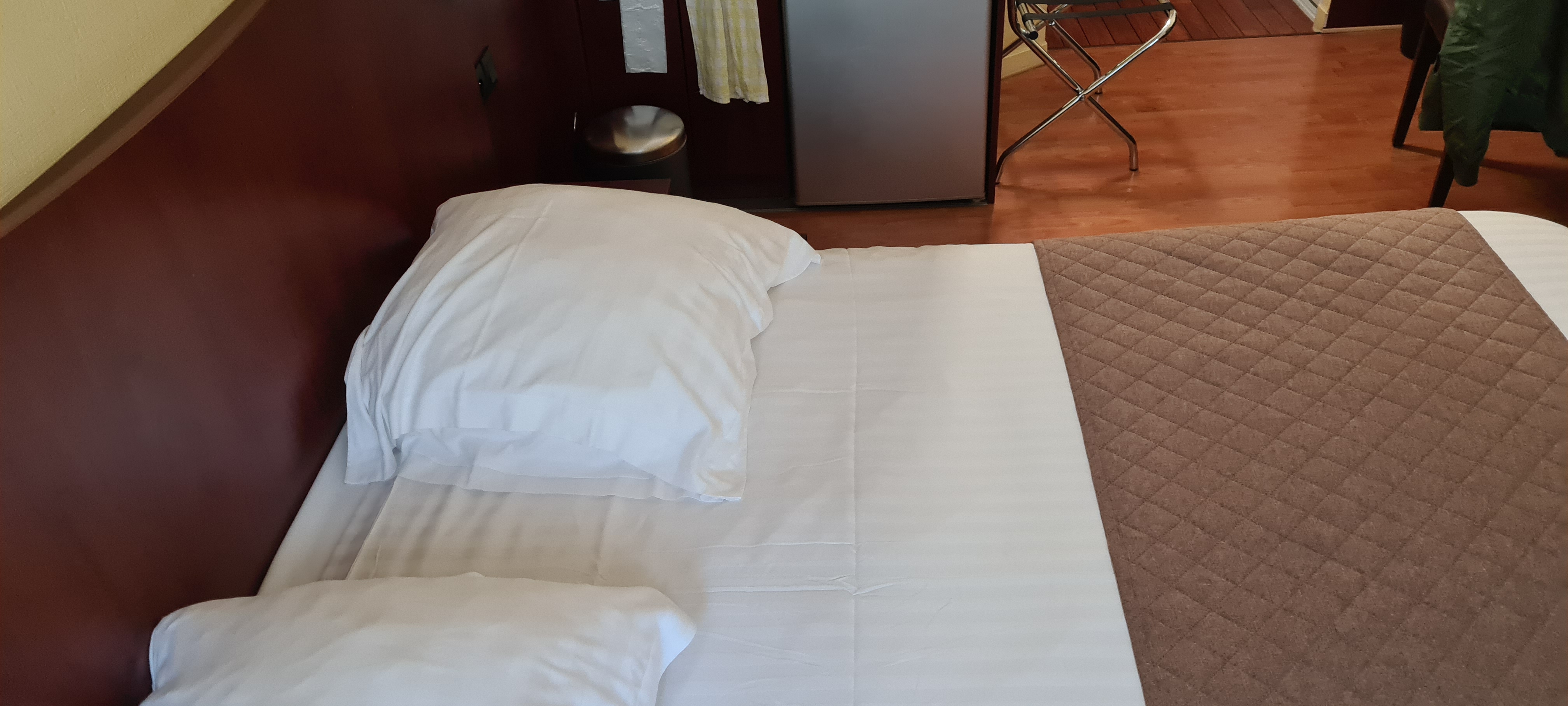 Bon accueil, malheureusement pas propre, en cette période de covid c'est très rassurant tâches sur le sol, poussière sur les meubles alors que cela ne prend que quelques secondes, tâches de sang sec sur le protège matelas, oreillers immondes, lampes de chevet qui ne fonctionnent pas, pas de clim alors qu'il fait très chaud dans la chambre. Par contre salle de bain propre et bon petit-déjeuner.