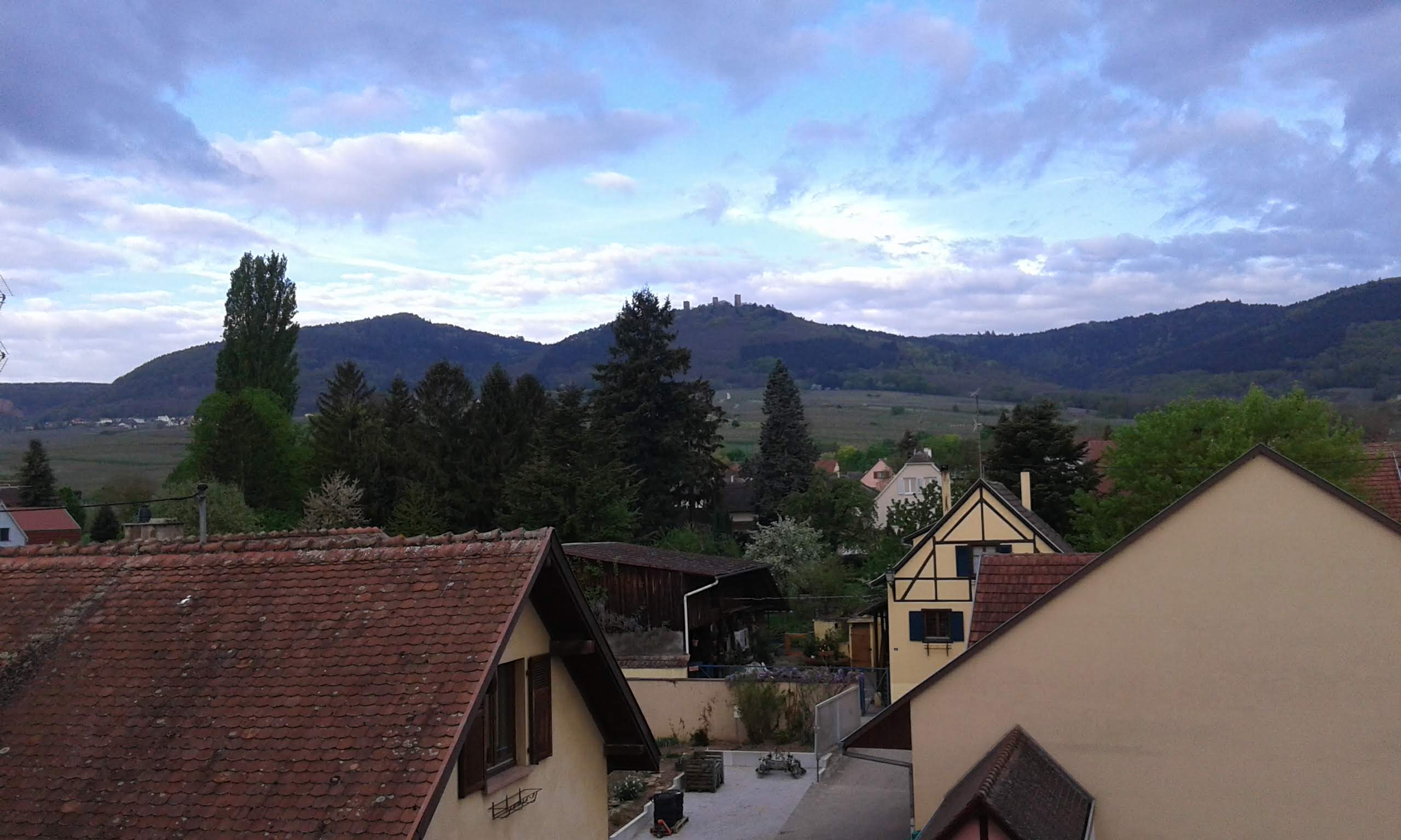 Sublime hôtel... Vue sur un couple de cigognes, sur les vignes et les ruines des châteaux.. Personnel très agréable..petit Déjeuner parfait