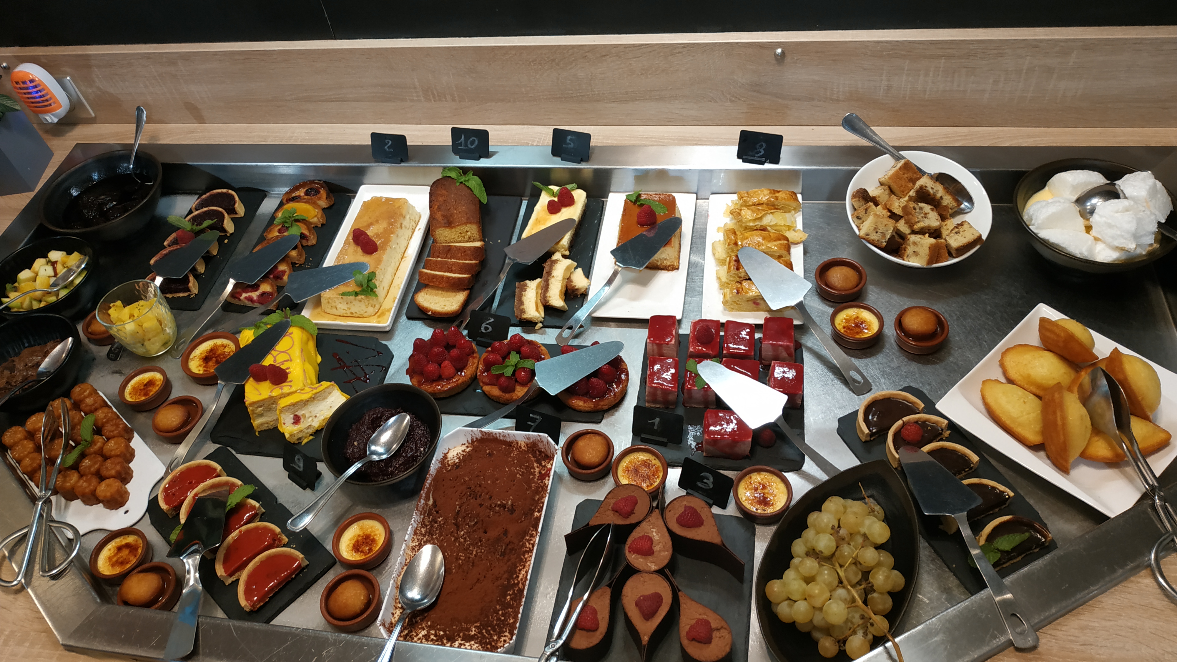 Offre classique : buffet d'entrées et de desserts, et un plat au choix. Bon rapport qualité-prix.