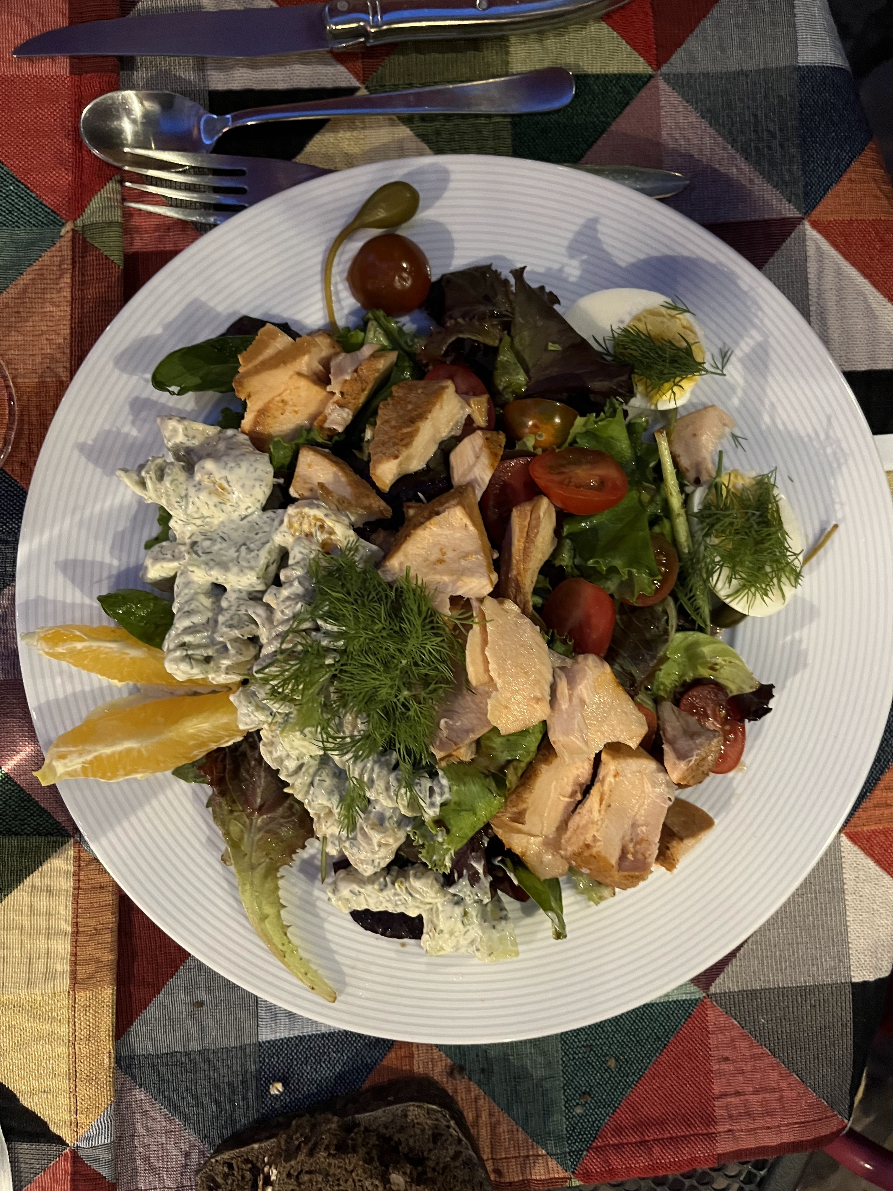 Une salade excellente.... 👌& une bonne bière finlandaise 🍻