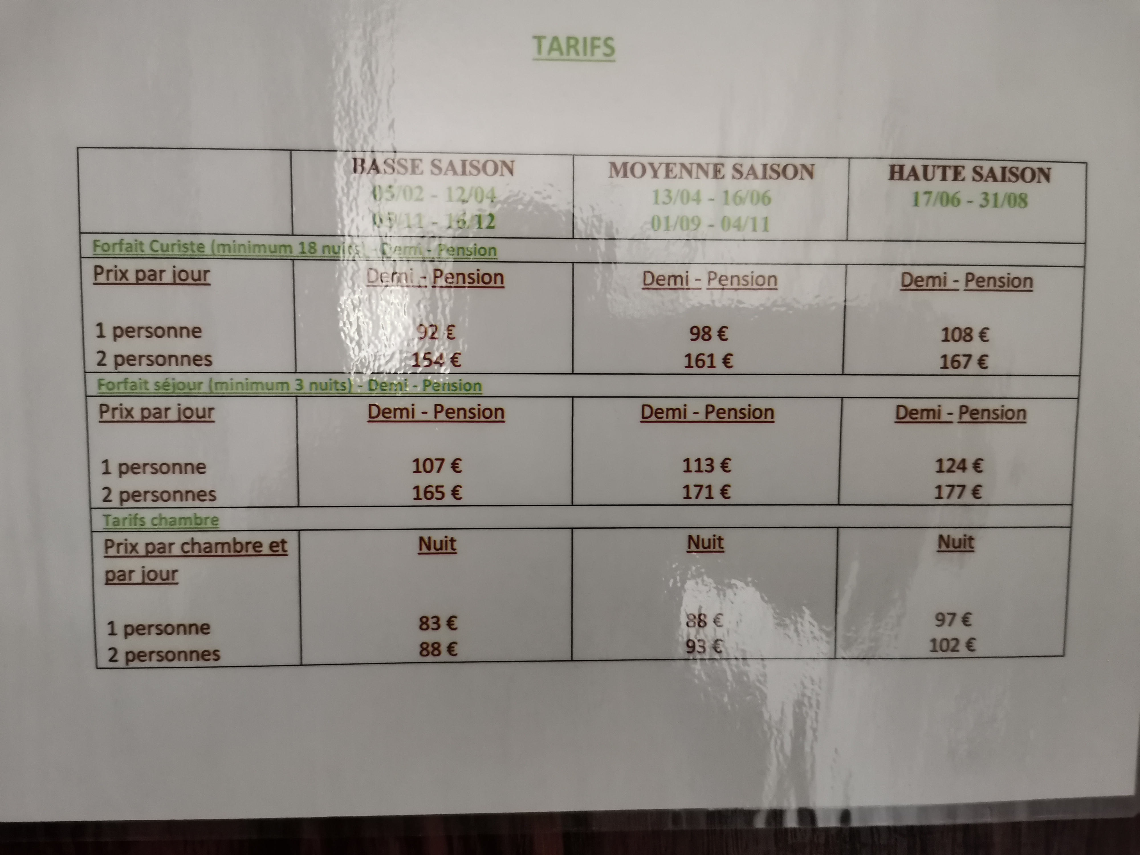 Je ne voudrais pas être trop positifs de peur de ne plus trouver de place quand j'y retournerai. Accueil exceptionnel (surtout quand on revient ...) Cuisine vraiment extra, fine, varié ... et le patron est un grand amateur de vin. N'hésitez pas à lui demander conseil Piscine super l'été après le boulot Chambres calmes coté piscine, moins coté rue surtout si on laisse les fenêtres ouvertes l'été.