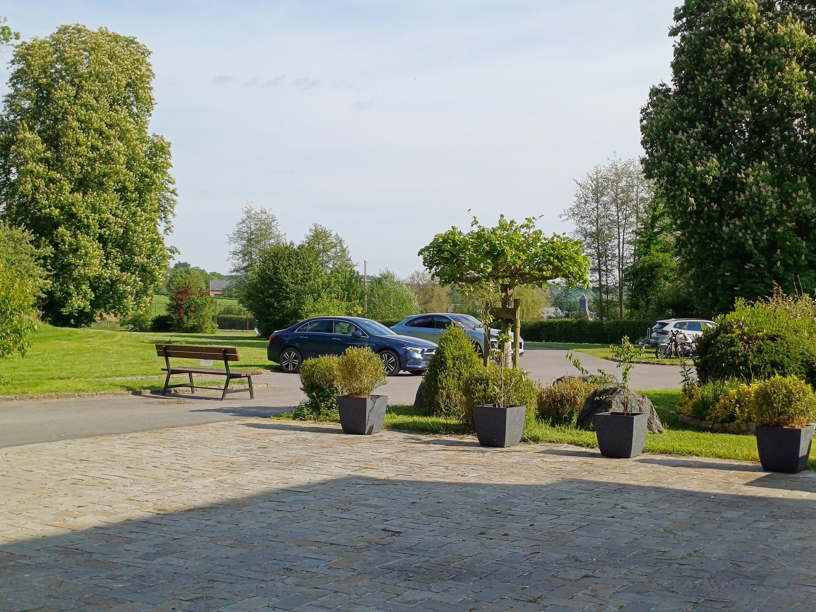 Quoi de plus plaisant que de dormir dans un château ? Celui ci ne manque pas de charme, même si il accuse le poids des années, l'emplacement est idyllique et possède plusieurs parking au sein des parcs. Une belle et grande terrasse vous accueille devant l'entrée de l'établissement. L'hôtel possède des chambres confortables, la notre a subit une rénovation et la literie est de qualité. Le personnel est très professionnel et serviable. Petits-déjeuners buffet avec produits régionaux