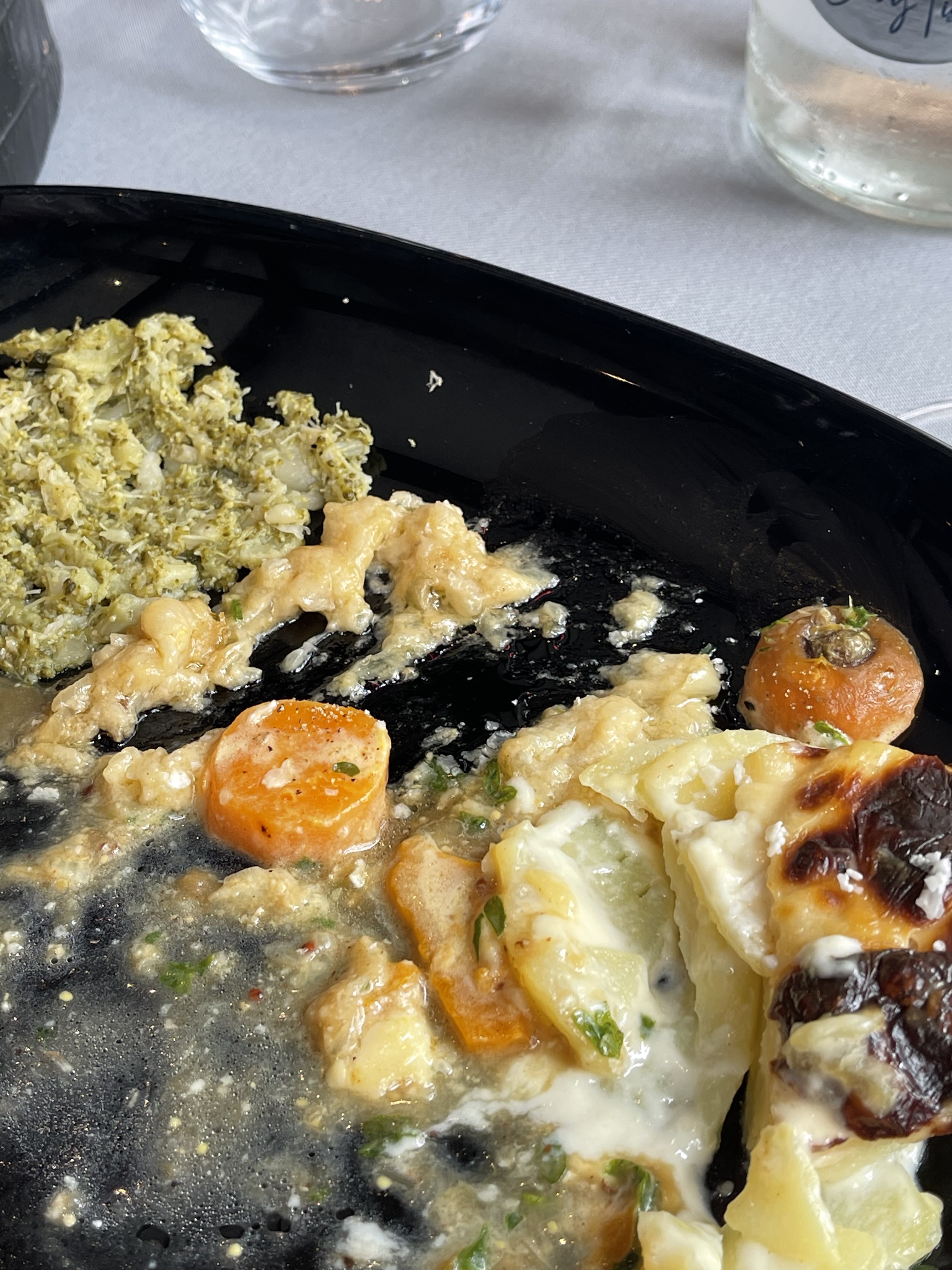 Cuisine décevante pour le prix. Purée de patates douces sans saveur, pommes de terre utilisées pour le gratin dauphinois cuites la veille ou achetées précuites. La crème au chocolat accompagnant les 2 boules de glace avait un goût d'eau.