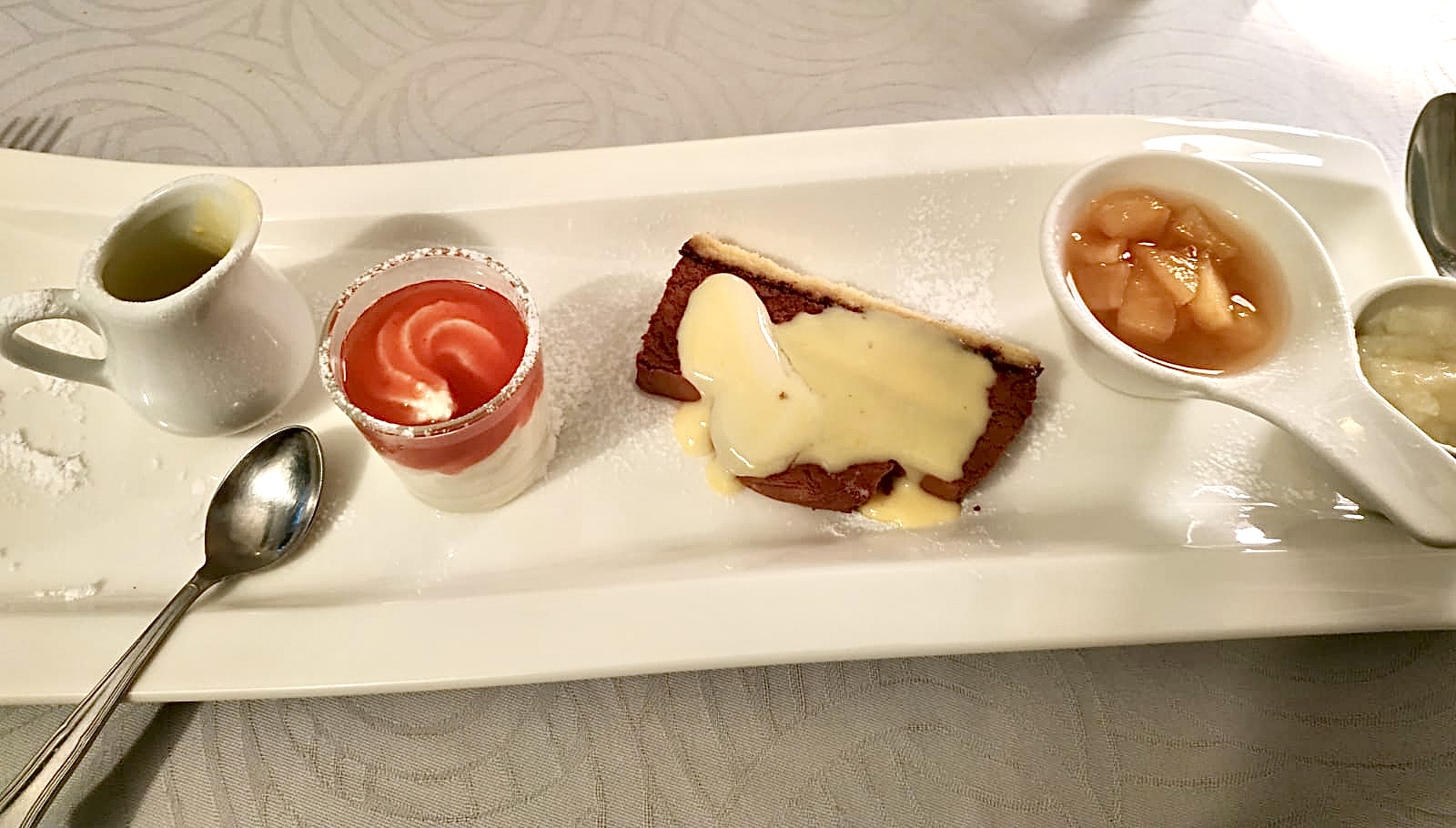 Cadre agréable, calme, belles prestations. Juste 2 observations: pain décongelé qui devient très vite dur et tarte trop sucrée