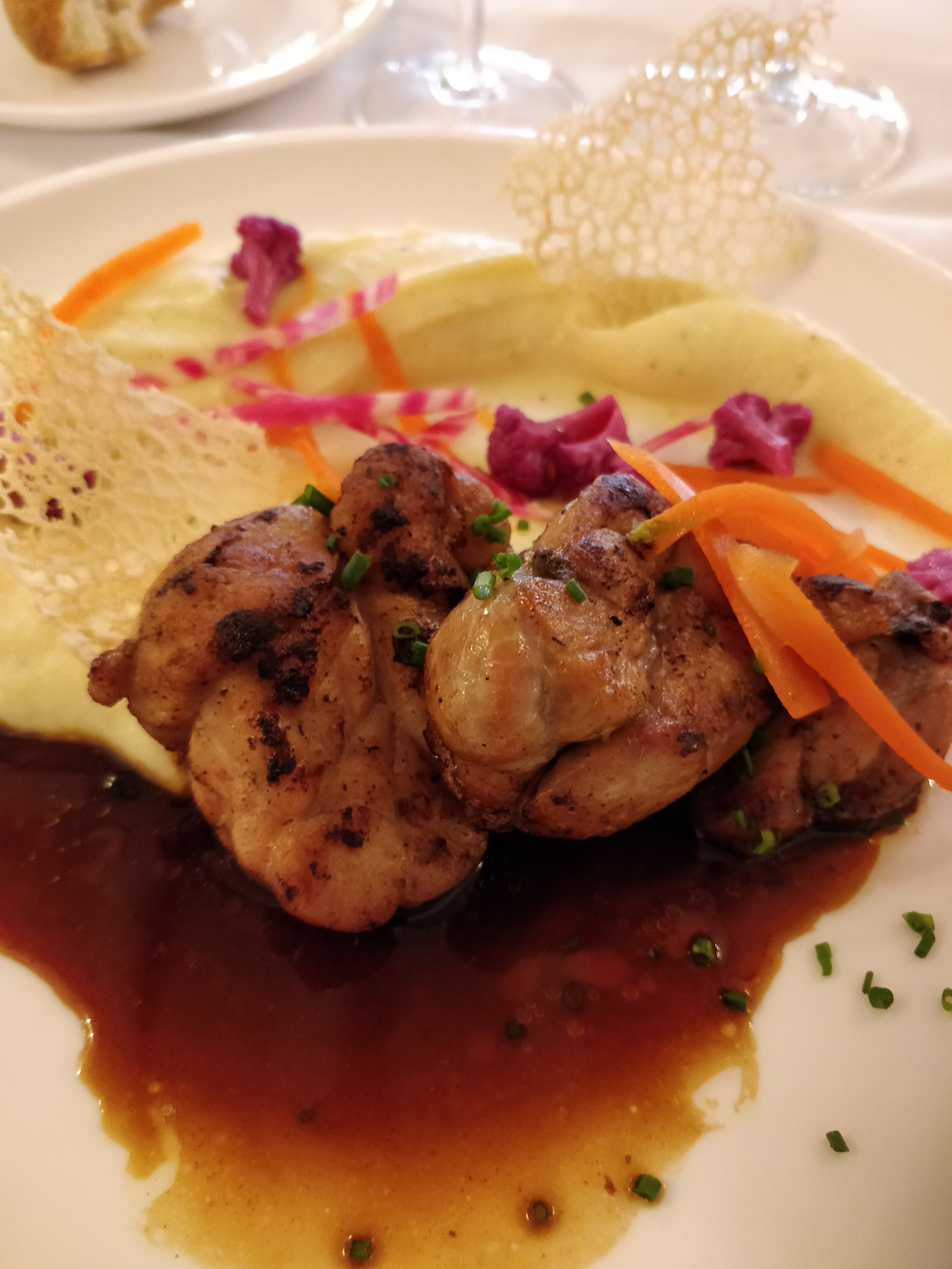 Un beau restaurant. Le service au top. Les plats étaient copieux et bons. Nous avons pu manger du foie gras, des noix saint jacques, un filet de veau à la cuisson parfaite, du fromage et un choix de petites bouchées pour finir. Tout y était nickel. Faites vous plaisir...