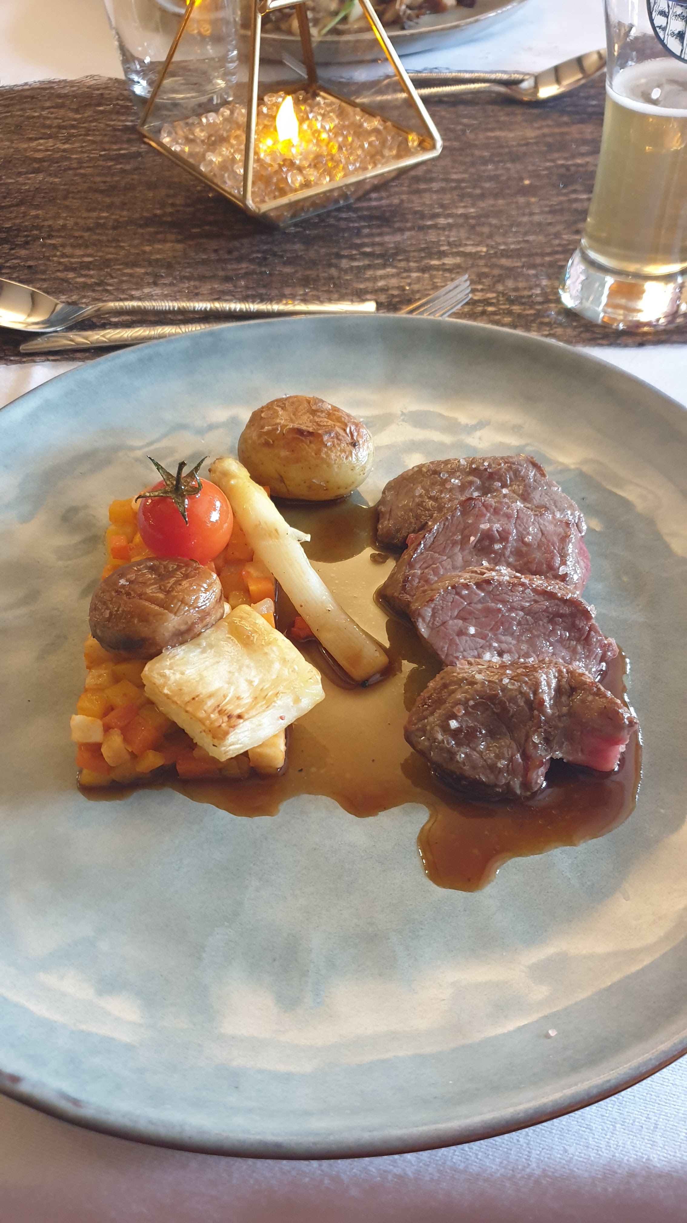 Nous avons eu un merveilleux dîner lors d'une belle soirée d'été sur la terrasse extérieure. Je peux vraiment recommander ce restaurant. Un hôte très sympathique et une très bonne nourriture et du bon vin. Vaut vraiment le détour lorsque vous êtes dans la région.