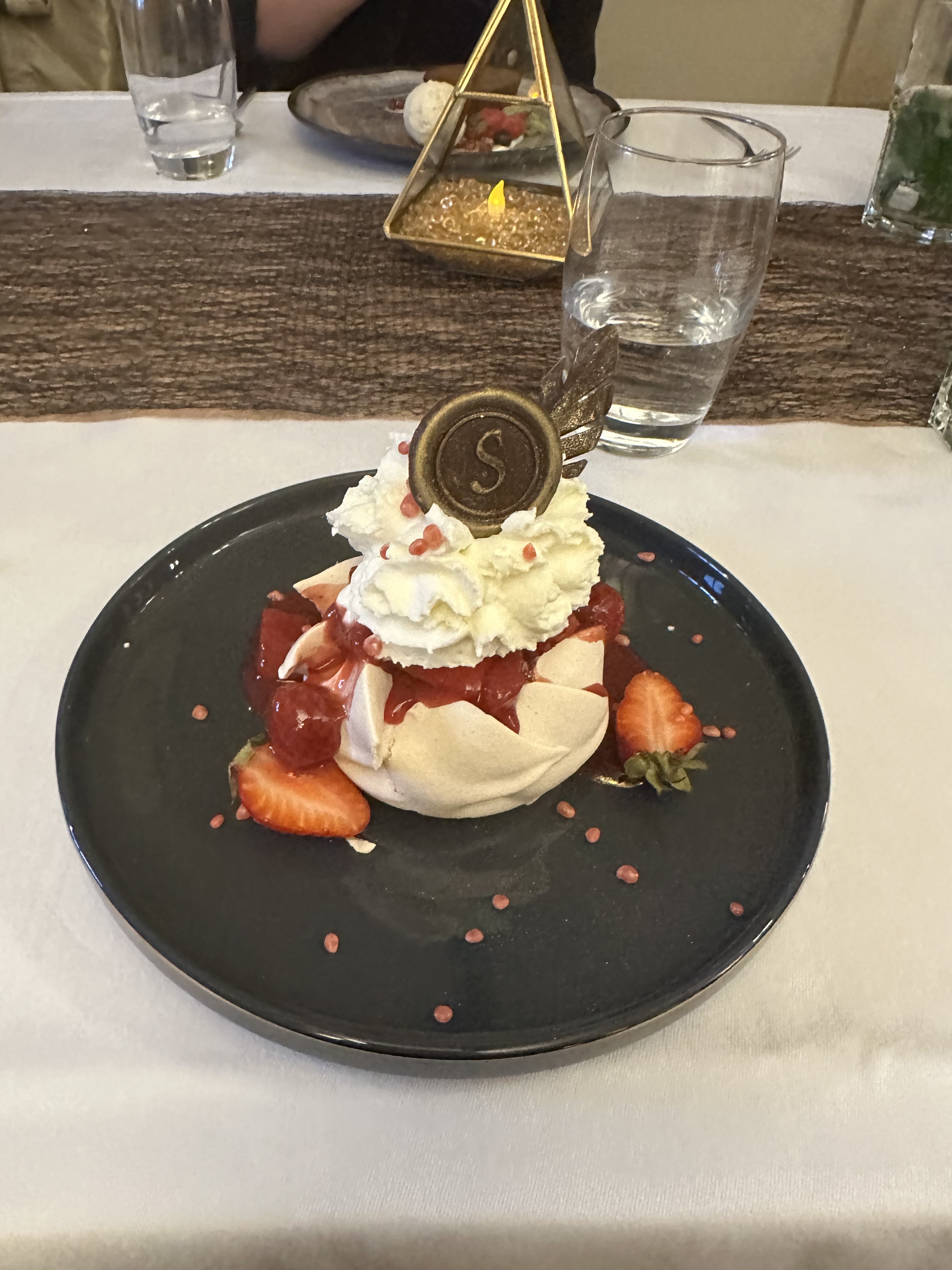 Serveuses compétentes, repas délicieux, et le dessert trompe l'œil un délice