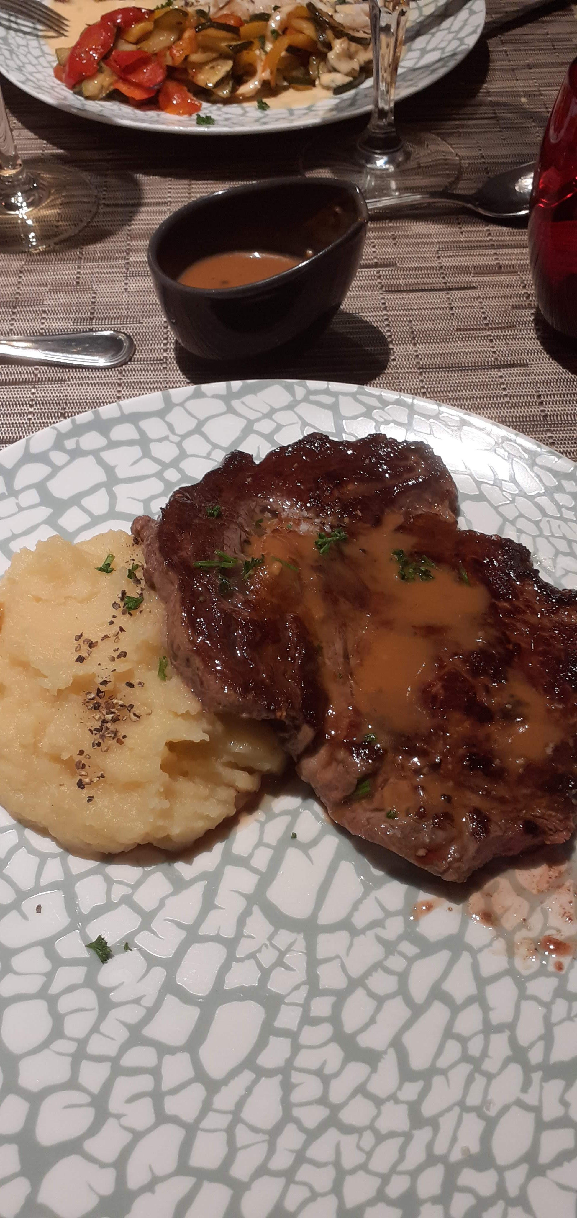 Je viens de lire les commentaires, j'aurais dû le faire avant d'aller au restaurant hier soir. Pour 22€ l'assiette (tous les plats au même prix... de la salade César à l'entrecôte) on attends un plat et des produits de qualité. On est loin du compte, une entrecôte pleine de gras et de nerf sans goût vous est servi. Les mêmes commentaires datent de plusieurs mois, visiblement les avis client ne sont pas pris en compte. C'est toujours bon à savoir. Cet hôtel ne reflète pas la qualité des Logis France que je peux visiter toutes les semaines dans toute la France, première fois que je vis cette expérience dans ces établissements Complètement : je viens de lire votre réponse commerciale qui est identique à chaque réclamation que vous recevez. Demander à votre direction de modifier les choses, ce sera plus efficace. Si ils souhaitent connaître des adresses de Logis France à la hauteur, j'ai pleins d'adresses à leur communiquer si ils le souhaitent