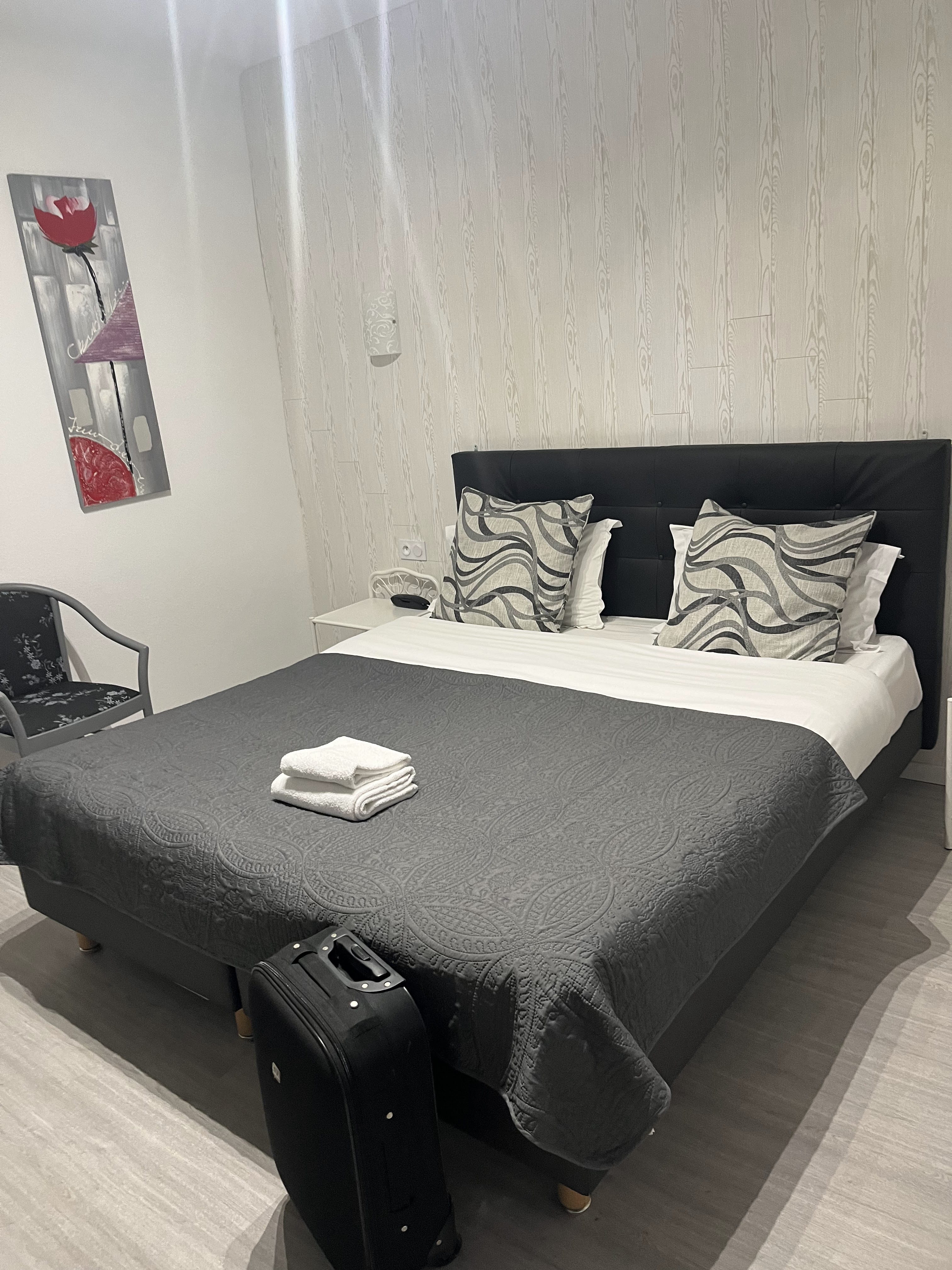 Hôtel simple qui répond à tous vos besoins de base et plus encore. Le propriétaire est sympathique et les chambres sont propres et confortables. Malheureusement, nous sommes arrivés plus tard dans la soirée et sommes partis trop tôt le lendemain matin pour utiliser la piscine, mais c'est un avantage appréciable, surtout pendant l'été chaud. Génial qu'un parking pour les clients soit également disponible.