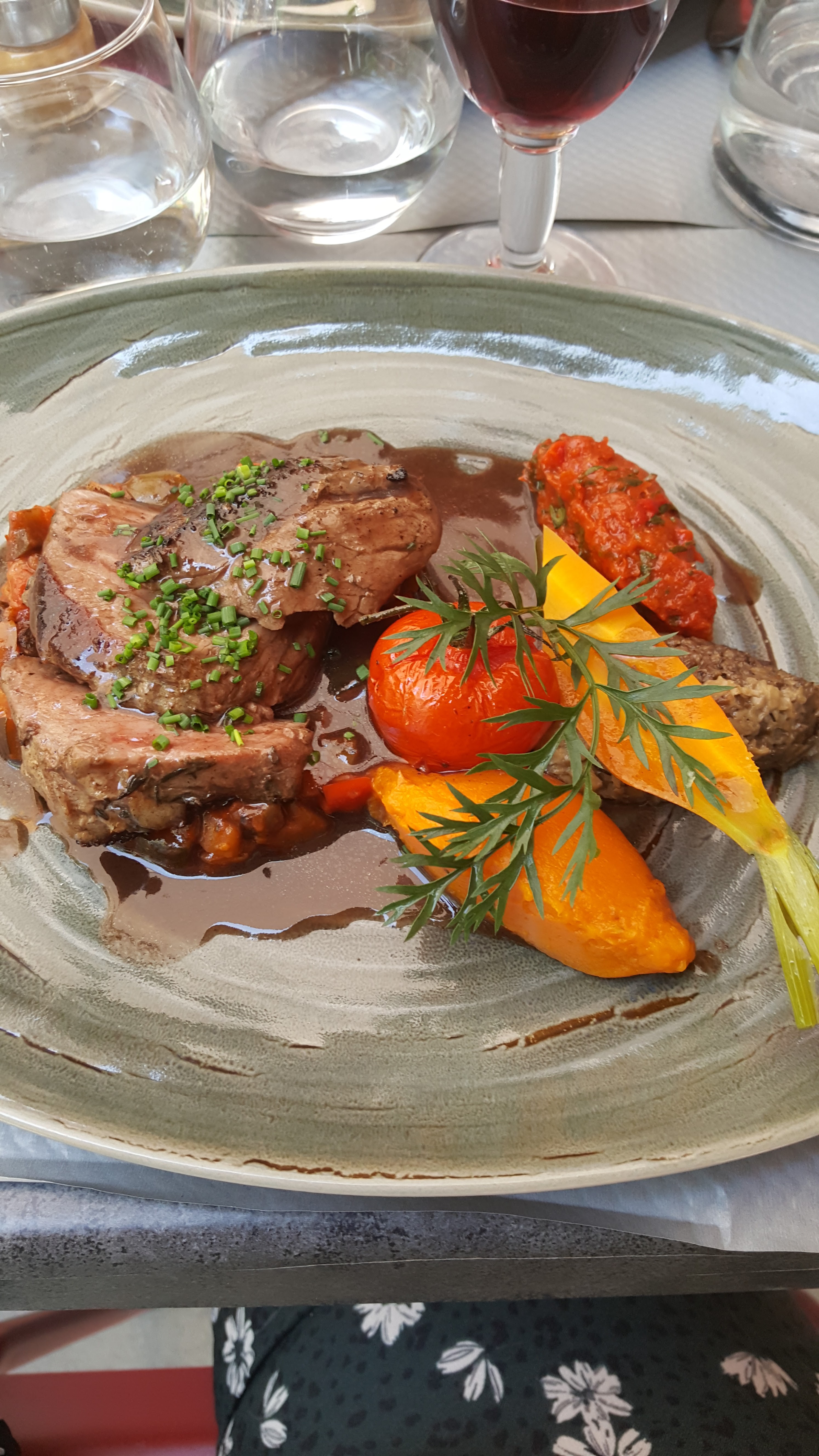 Aujourd’hui il faisait une chaleur écrasante, caniculaire même.le chef nous a proposé de nous installer dans la salle de restaurant climatisée plutôt que sur la terrasse Merci beaucoup