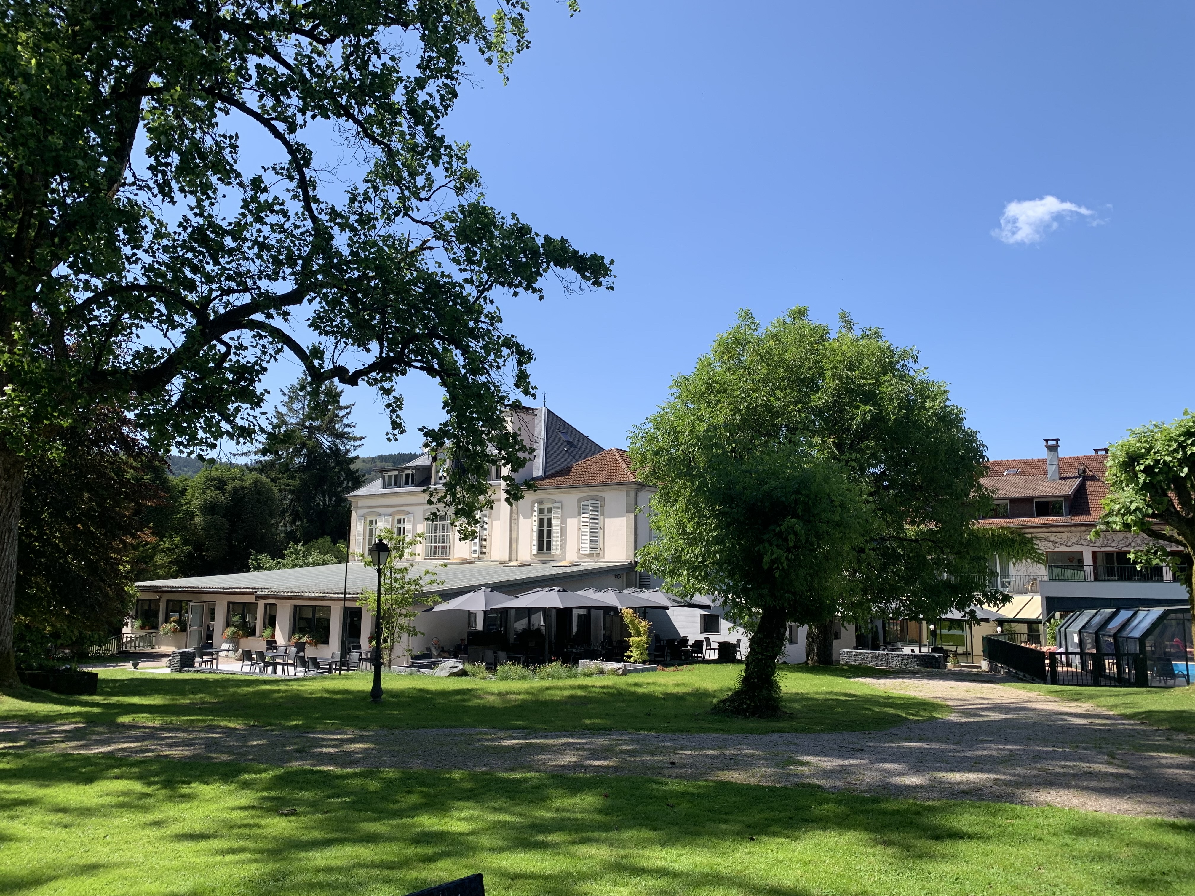 Bel endroit où l'on mange très bien. Trois nuits en demi pension l'hôtel est un peu vieillot mais très propre. Chambre bruyante malheureusement. Partie restaurant parfzitep ! Mets raffinés . Personnel adorable. Parc splendide. Gros gros bémol à la piscine jamais découverte où il fait une chaleur éprouventable ! Et le revêtement autour est ultra glissant mon petit garçon est tombé t à plusieurs reprises en marchant doucement. Nous y retournerons cependant avec plaisir