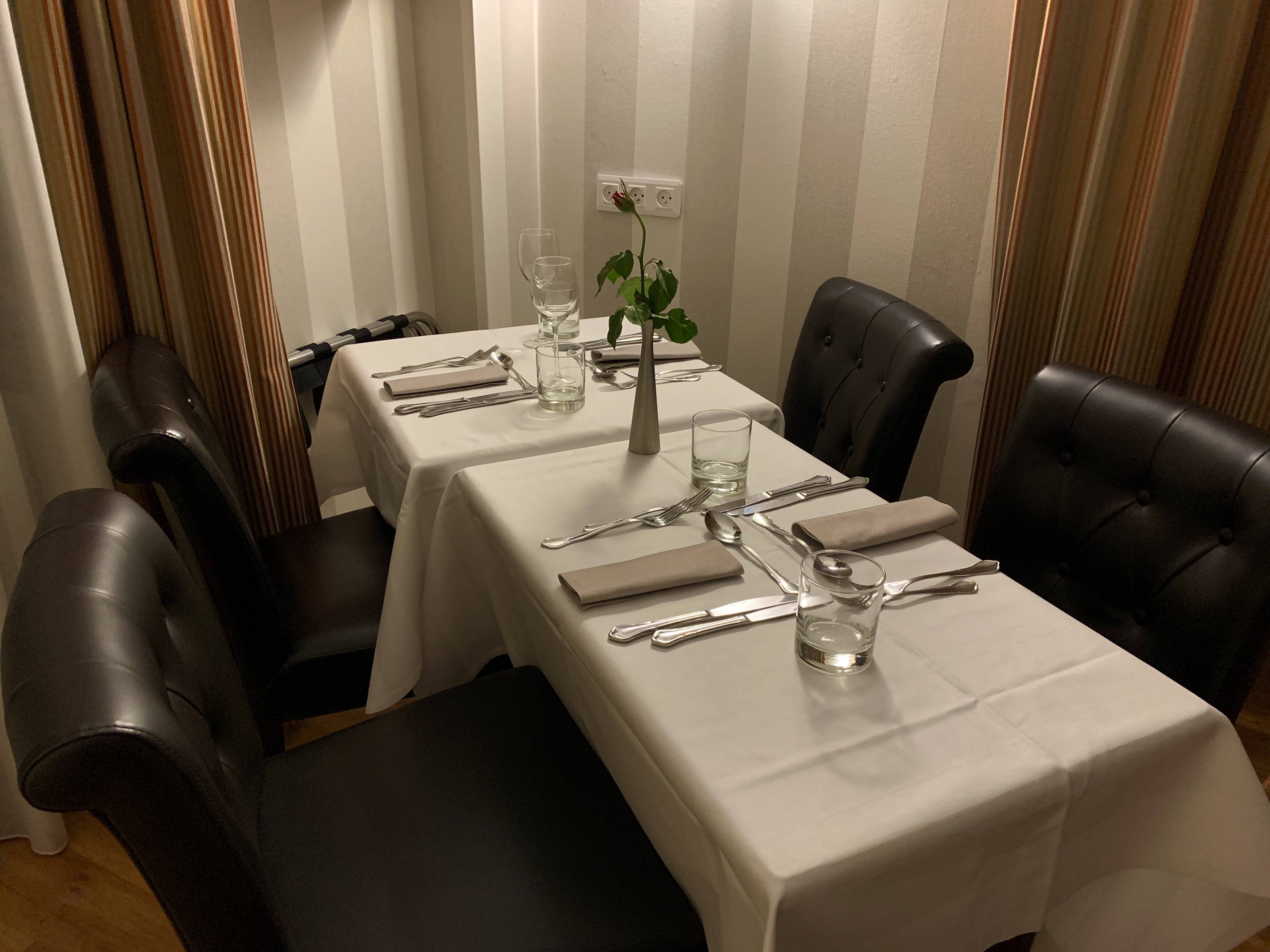 Petit hôtel charmant en bordure de route ! Nous y avons passé une seule nuit plutôt confortable dans une suite de 2 chambres (2lits séparés pour les enfants, un petit salon, et notre chambre lit 2 personnes fraîchement rénovée ) nous avons commandé le repas du soir en chambre ! Très bonne qualité et très bons produits proposés ! Un régal !! Table dressée en chambre ! Un vrai plus en cette période de couvre feu.. une étoile en moins pour les sanitaires vraiment trop petits !