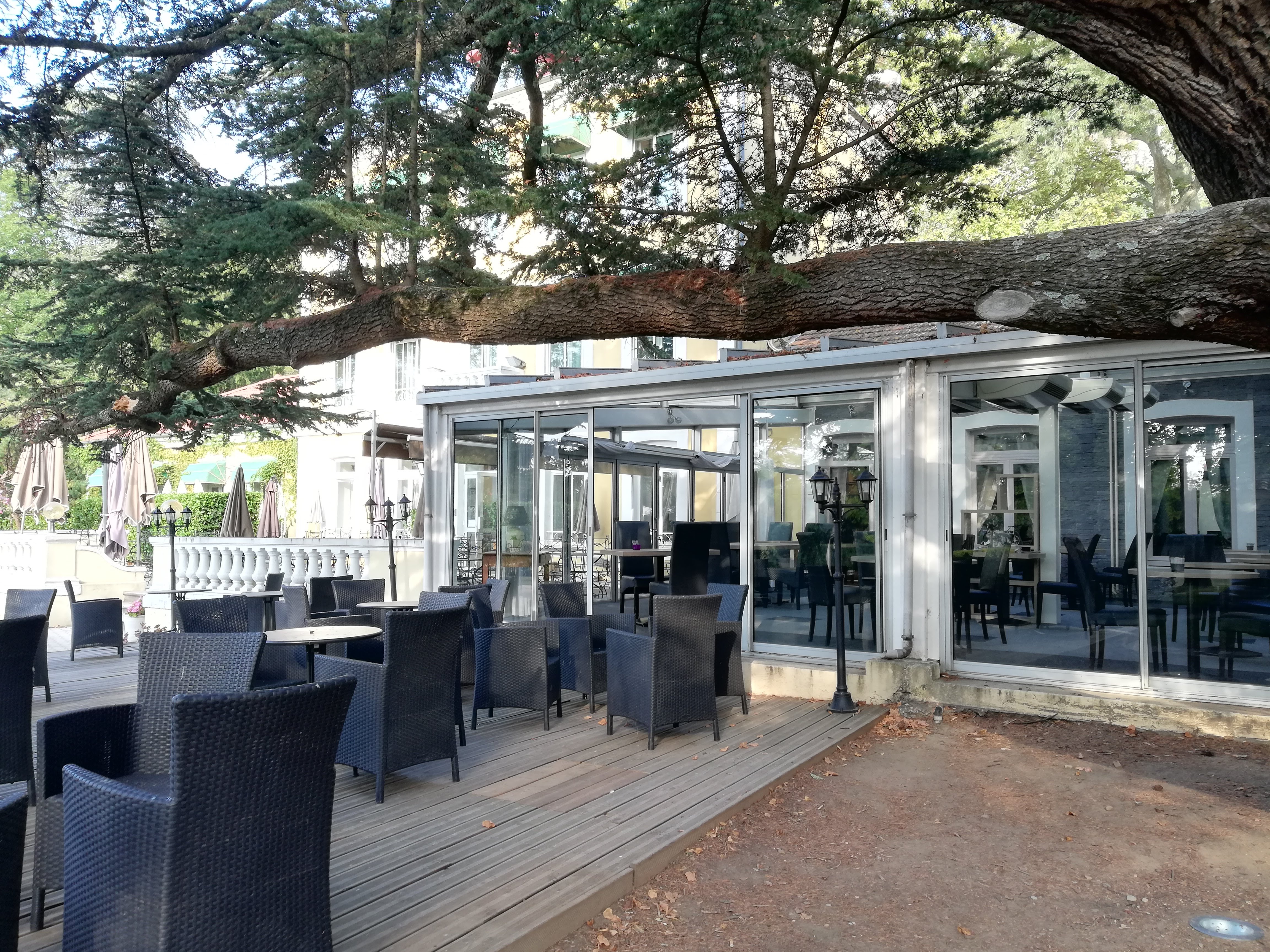 Super cadre , bon restaurant ,mais terrasse un peu négligée début décembre ( vitres du toit pas nettoyées et terrasse encore fort encombrée de branches après les dégâts de la neige )