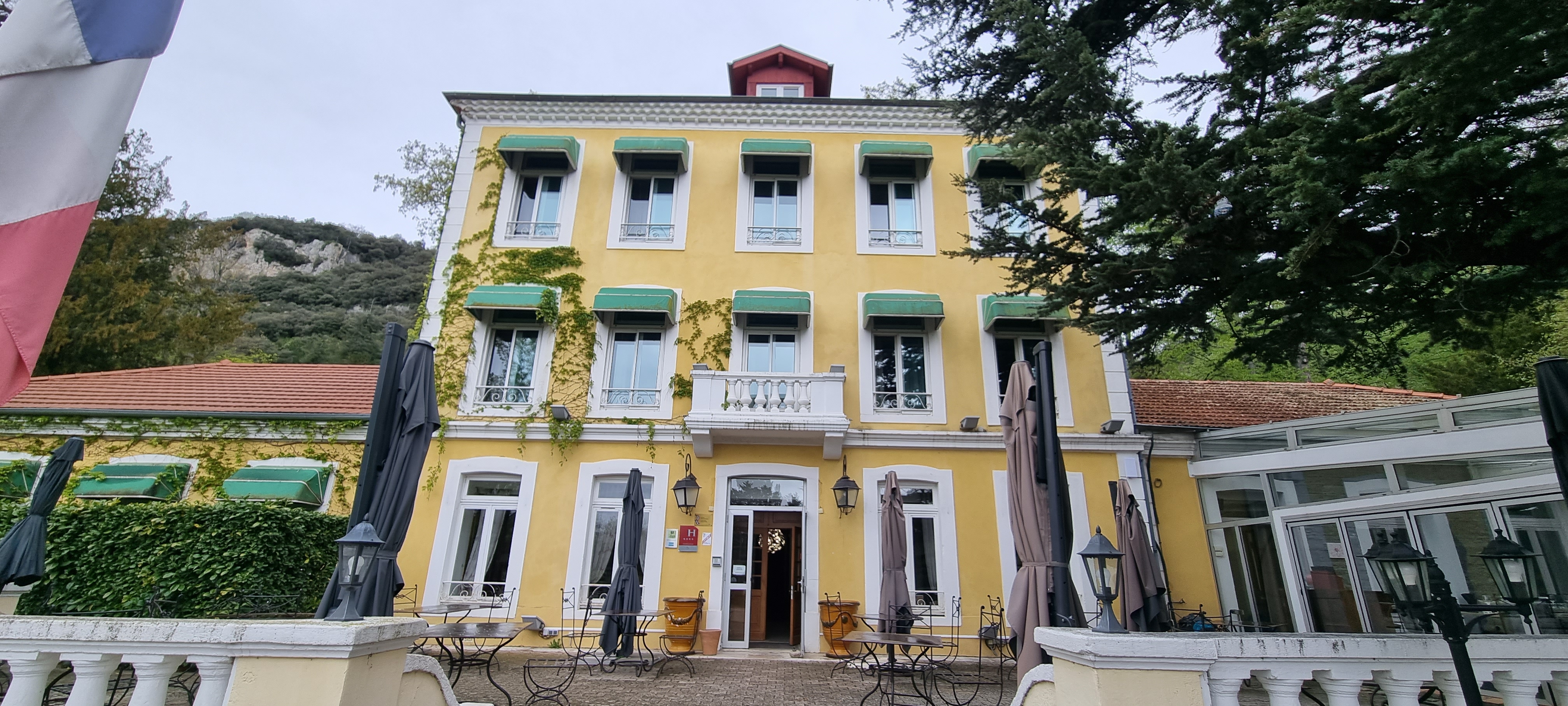 Hotel magnifique dans parc arboré avec des arbres centenaires Piscine et transats chambres très confortable déco soignée repas du soir succulent Petit déjeuner exceptionnel servi à table Et accueil chaleureux Adresse à retenir