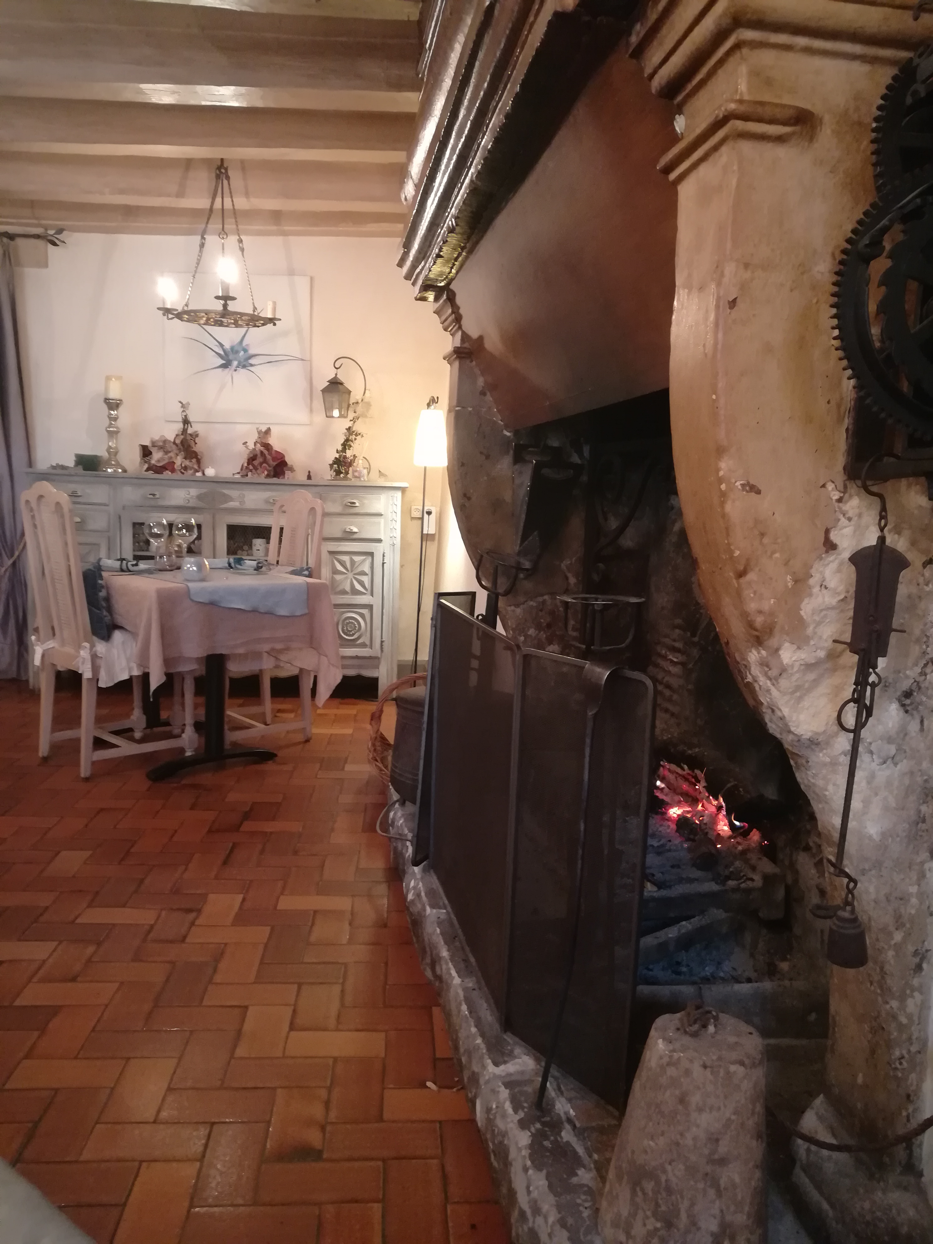 endroit très accueillant et chaleureux réchauffé par un feu dans une superbe cheminée service parfait repas excellent, très belles découvertes gustatives pour un prix doux je recommande NH