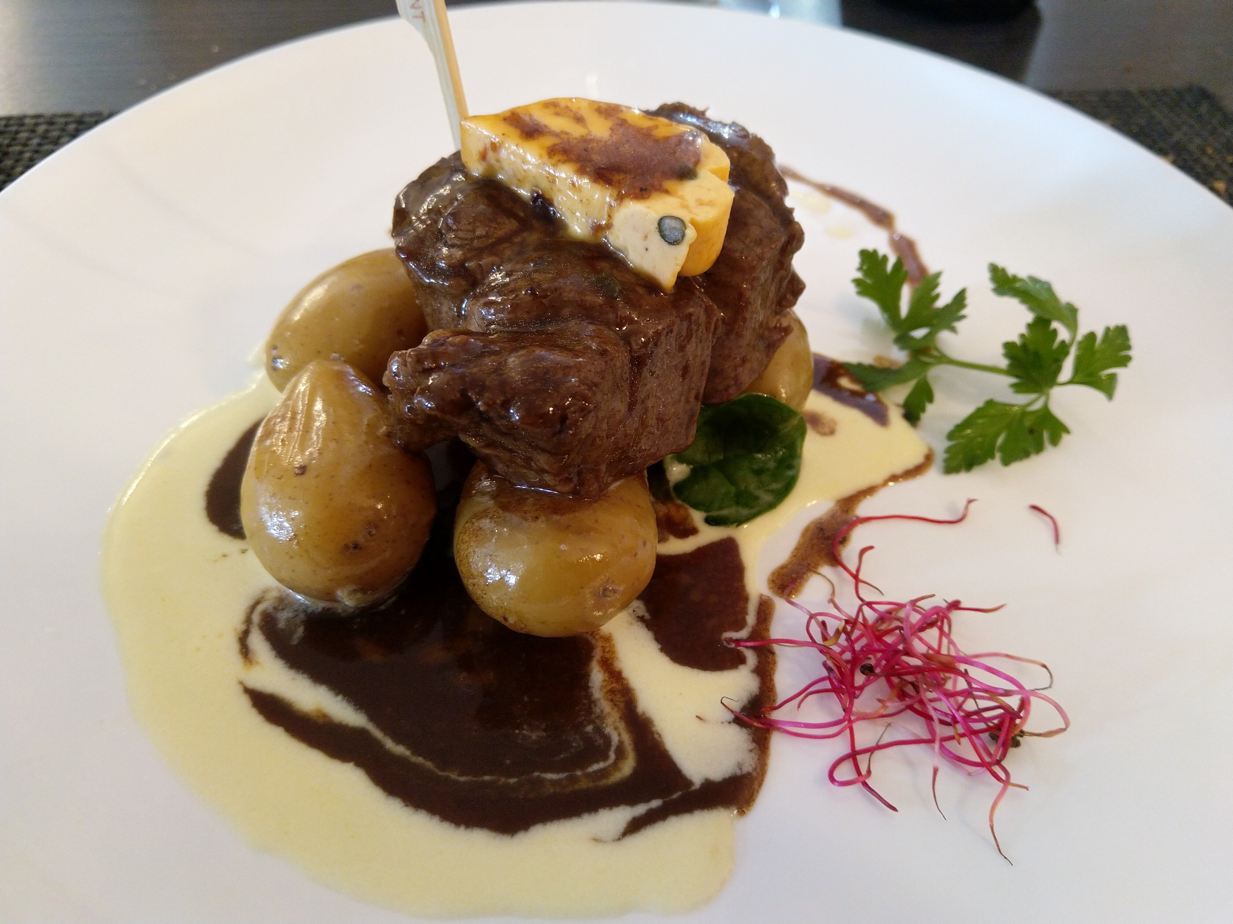 Très bon endroit pour une étapes : chambre cocoon et table d'exception il fut garder une place pour les desserts qui sont joliment servis et en plus excellents. Lieu à recommandé