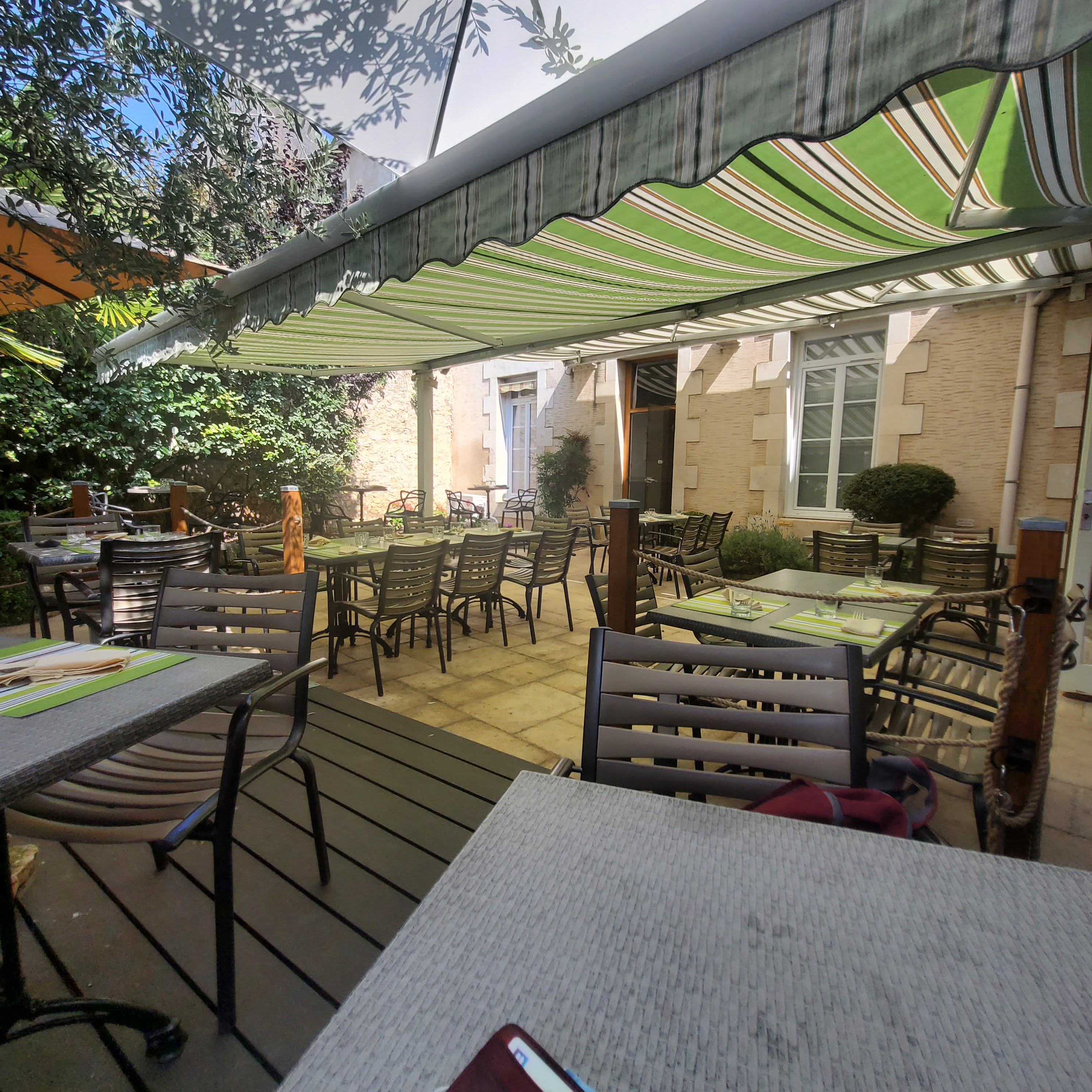 Nous avons mangé au restaurant de l'hôtel à 6 personnes. Un régal! Des plats bien servis, bien présentés, et délicieux. Le service est excellent et l'accueil chaleureux. C'est un lieu de qualité sans être guindé et à des prix très corrects. Je recommande vraiment, et si le temps s'y prête, ne pas hésiter à se mettre en terrasse.
