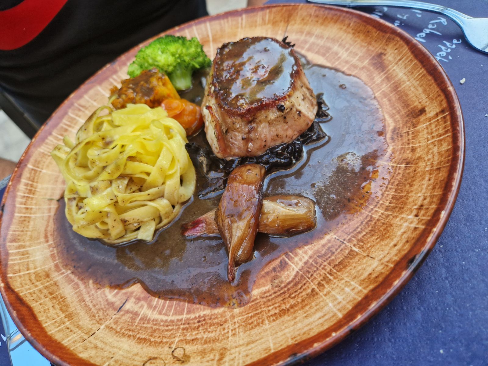 excellente nourriture, service et ambiance. Nous y sommes allés en été, mais nous venons juste de passer à l'examen. La terrasse était charmante. Situé au centre de la ville avec parking devant et derrière. A deux pas de la partie médiévale de la ville