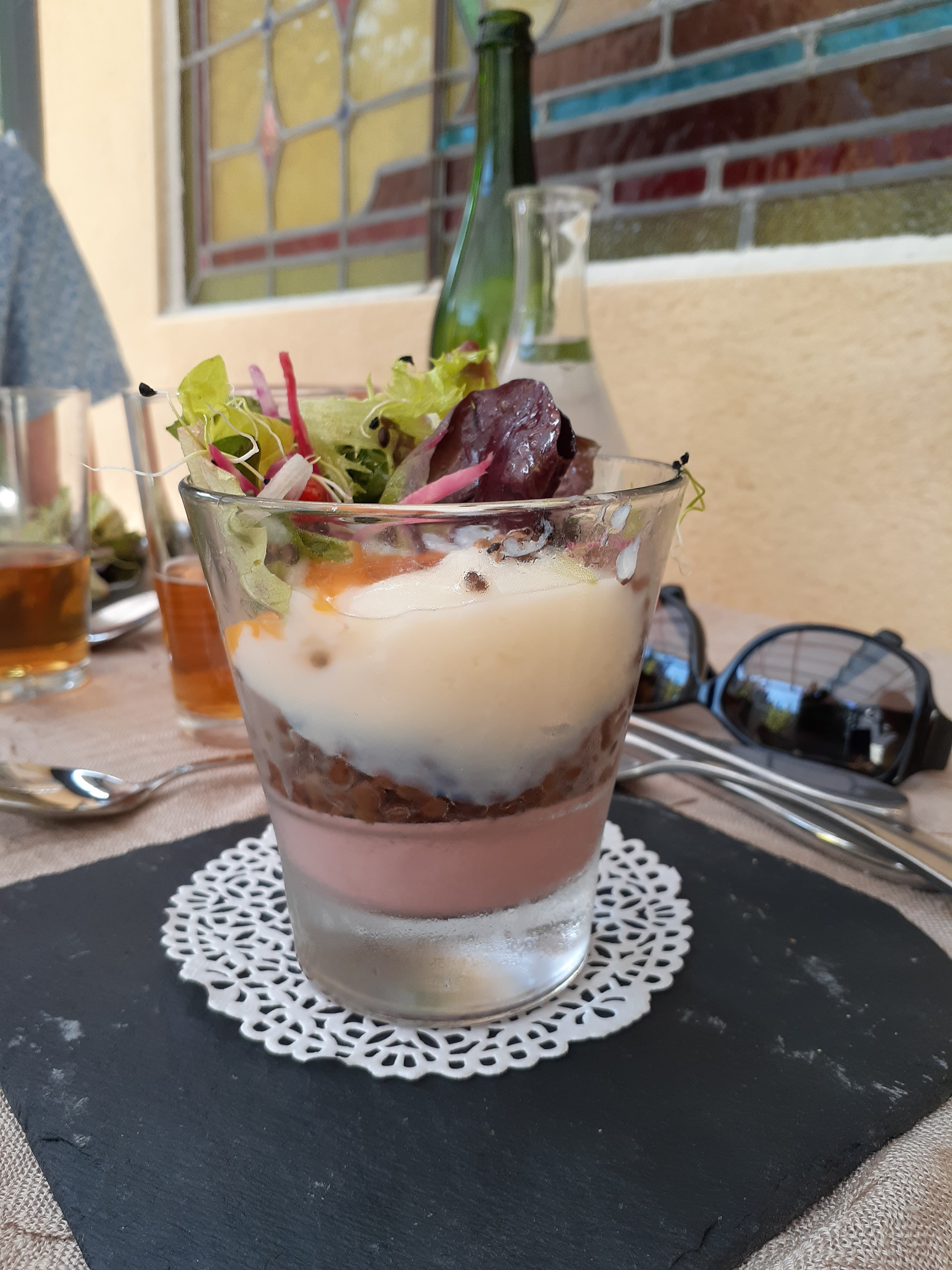 Nous sommes allés dîner dans ce charmant restaurant et avons bien mangé. La carte propose des spécialités de la région, les tripes et le boudin étaient très bons, tout comme la terrine de lapin, seulement nous n'avons pas été très satisfaits de l'œuf sur lentilles et betterave, servi trop froid et manquant de saveurs. Le plat d'accompagnement de pommes de terre avec le boudin noir était également en partie complètement froid, non réchauffé avant de servir. Le fromage et le dessert étaient excellents, le service discret.