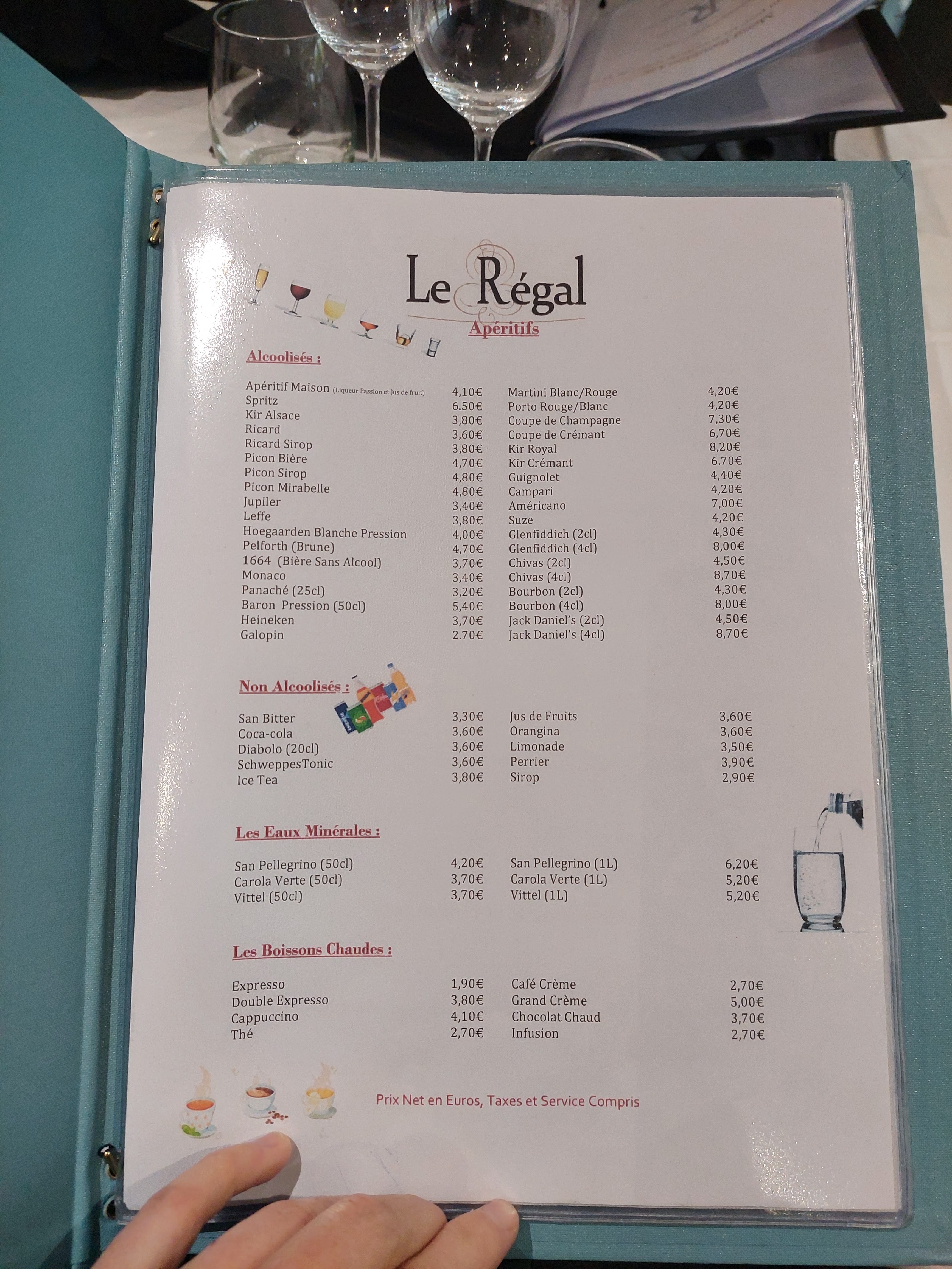 Un très bon restaurant,les plats sont excellents préparés avec soin et de bons produits,la salle de droite est grande,on peut ressentir un manque d'intimité en comprenant la discussion des voisins de table,personnel sympa avec beaucoup de jeunes n'ayant pas toujours une grande expérience,heureusement chapeautés par un ancien,prix un peu élevé,vous ne serez pas déçu en dînant au regal