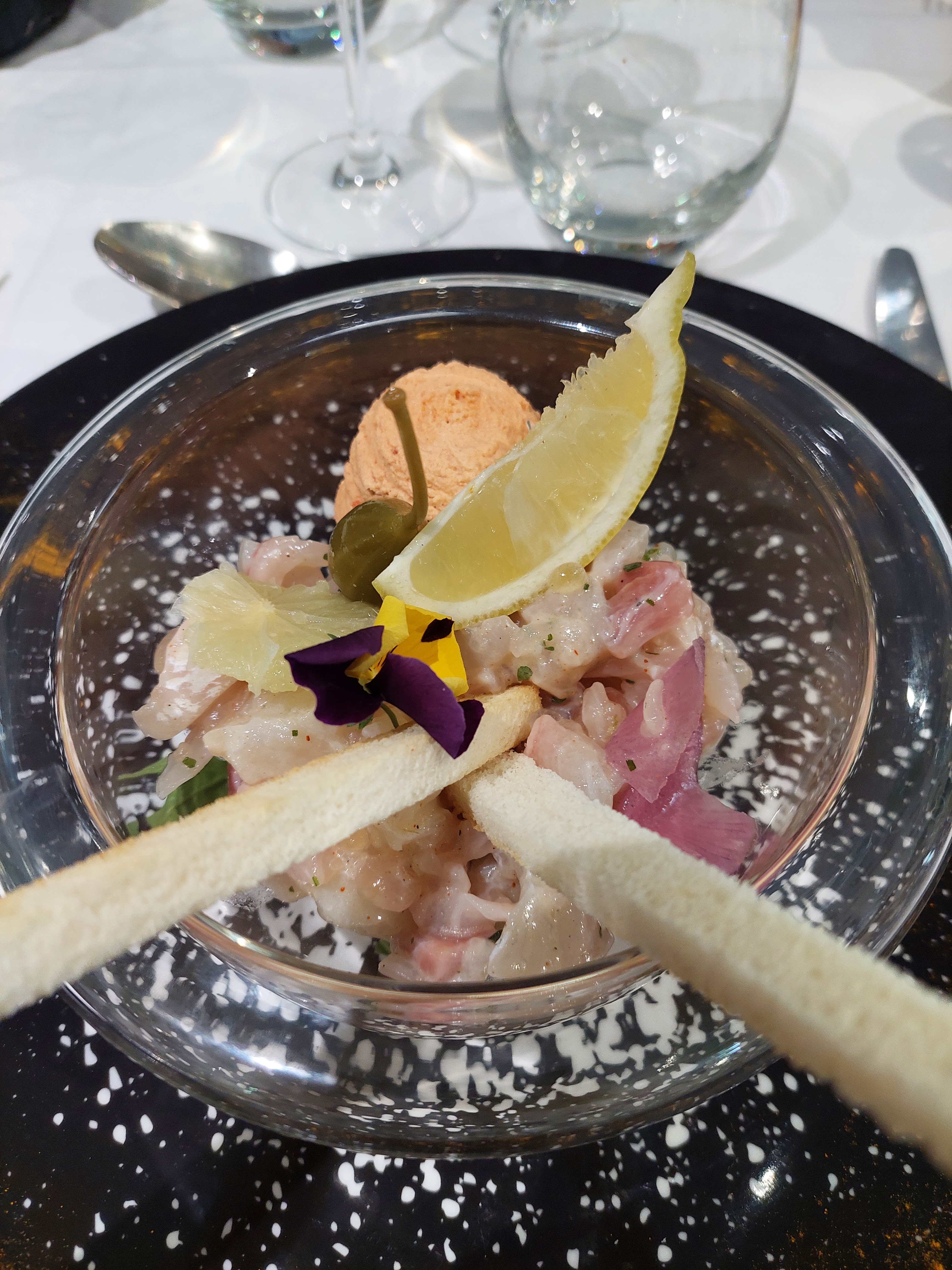 Nous avons pris deux menus à 37€ , très déçu par les entrées : caille à la sauce café, le cafe emportait le goût donc très moyen ; puis la deuxième entrée ceviche poisson glacé aucun goût . Pour le reste ça pouvait aller . Si j'avais une note à dire 6/10 .II me semble que c'est une cuisine d'assemblage , ou est le grand chef ?