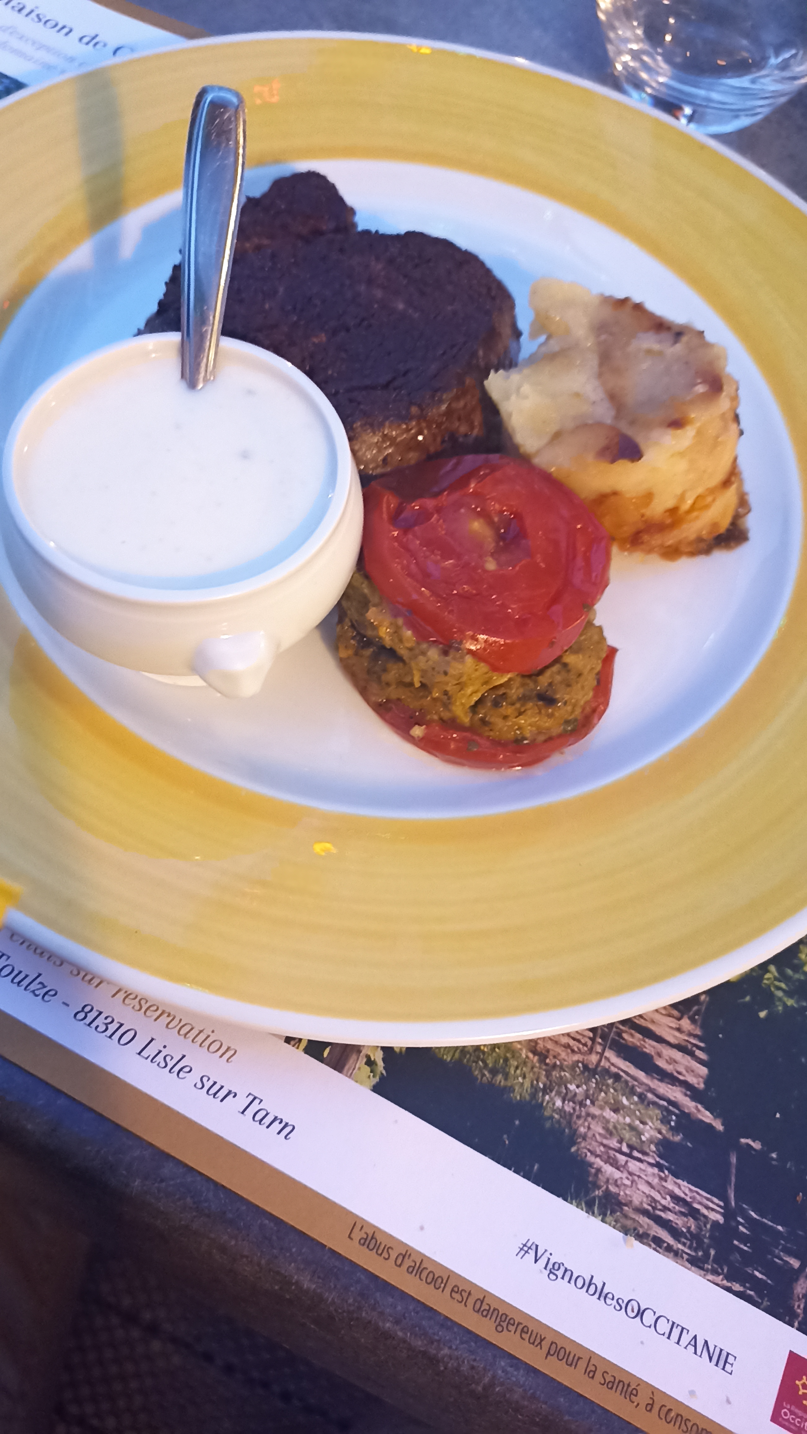 Vers 13h40 hier - samedi 20/8/22, nous nous sommes assis près de la porte de ce restaurant dans l'espoir de manger et de boire. Nous avons cherché le serveur à l'intérieur. Il est finalement sorti, grand, brun et d'aplomb, et nous a dit que nous ne pouvions prendre qu'un verre. Il ne s'est pas arrêté pour nous demander si nous voulions prendre un verre mais s'est éloigné ! Ce serait l’un des hommes les plus grossiers et les plus désagréables que nous ayons eu le déplaisir de rencontrer. Nous sommes donc allés à Rabastens et avons pris un délicieux déjeuner et un bon service poli dans un café !! Nous étions des touristes étrangers de Nouvelle-Zélande et nous avions du mal à croire qu'un serveur se comporterait de cette manière !