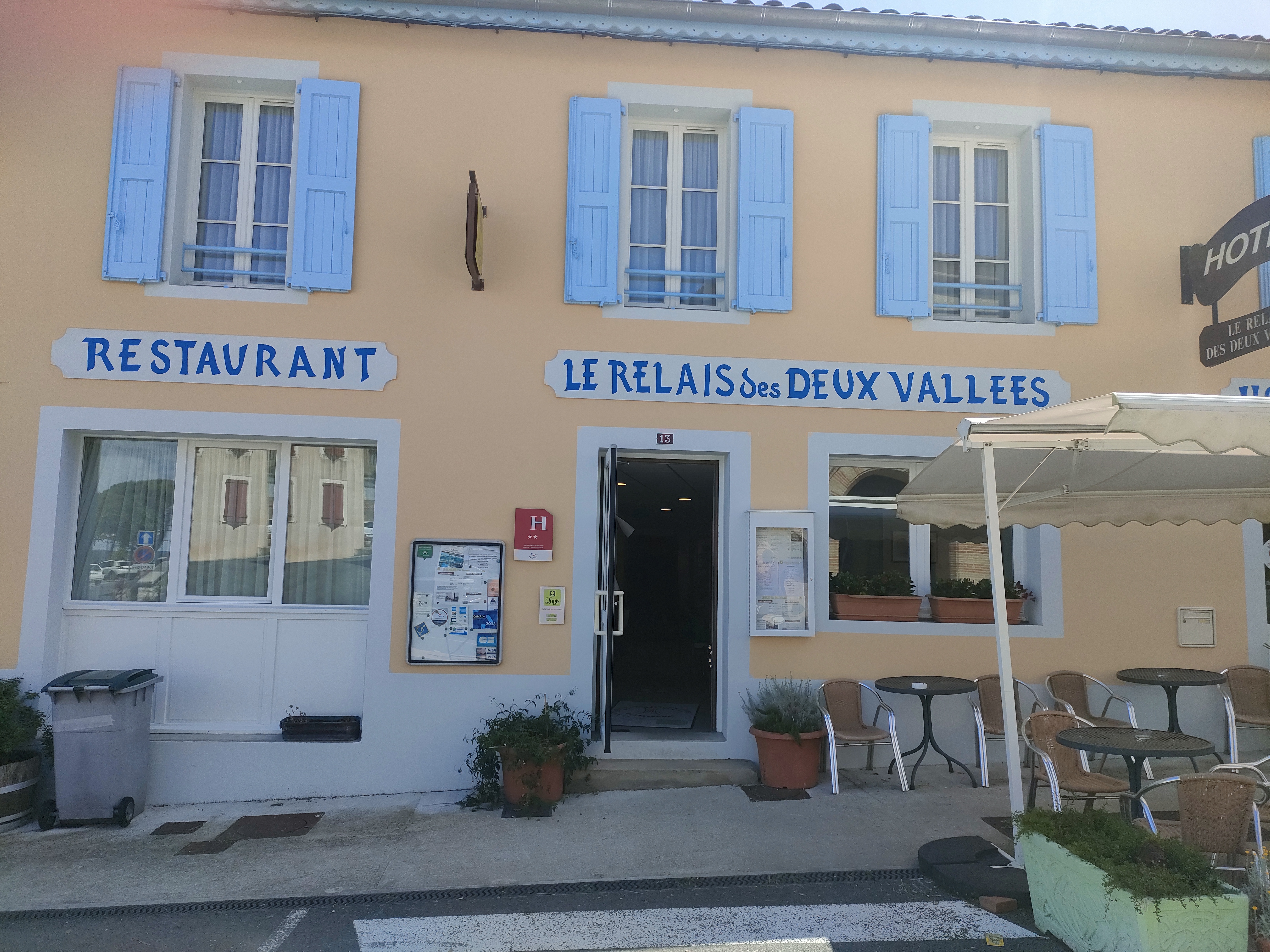 Une terrasse avec une vue splendide. Un accueil super!!... une cuisine traditionnelle fort agréable. Venez visiter salvagnac, manger au relais des deux vallées. Vous passerez un très bon moment.