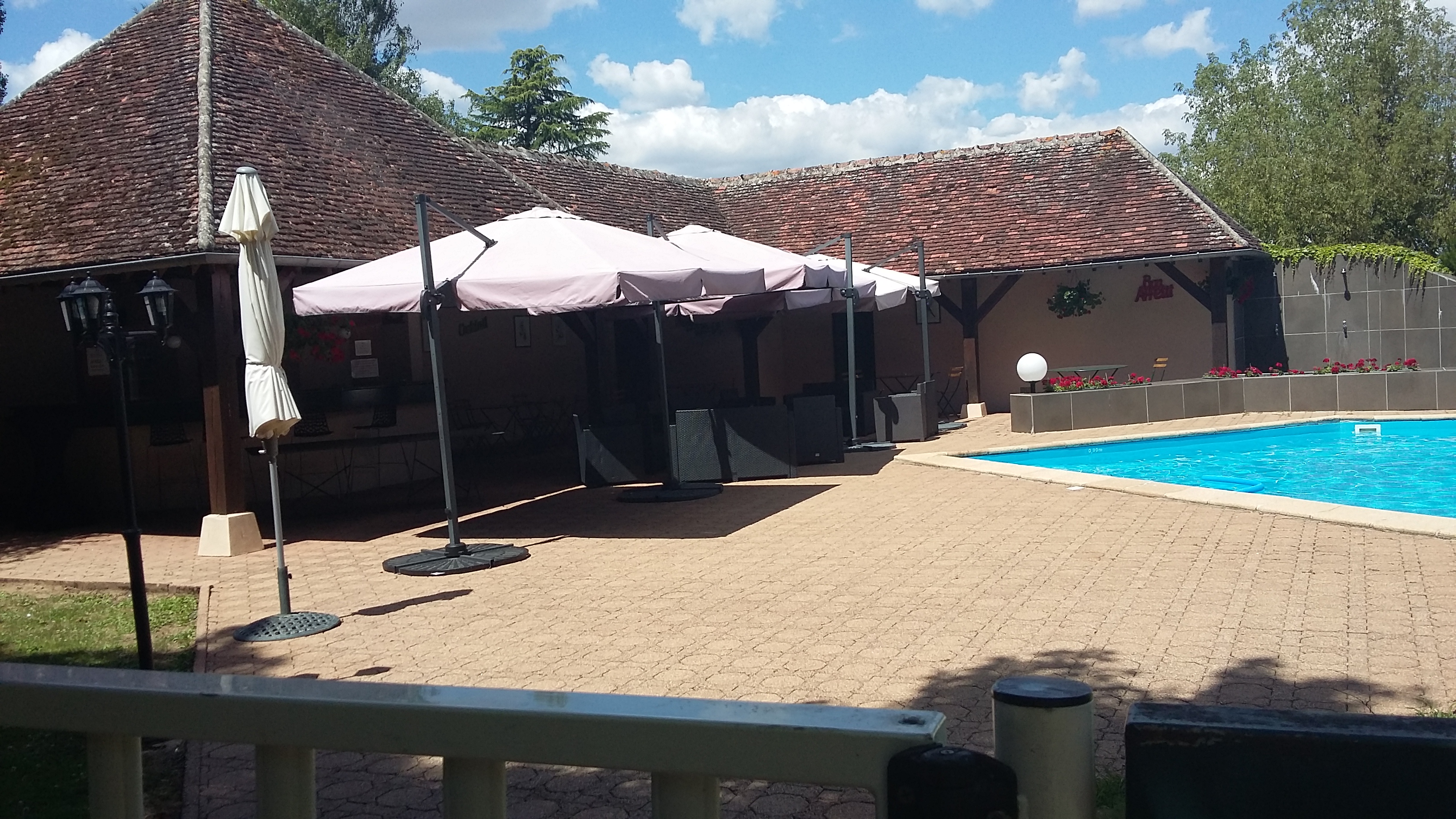 Ensemble satisfaisant mais quelques points noirs pour l’hôtel : chambres qui méritent un rafraîchissement (moquette tâchée, etc), de plus une bouilloire est tjs utile ! Chaises de jardins à nettoyer ainsi que terrasse, pas assez de transats pour la piscine et peu d'ombre. Attention ! petit déj en chambre très décevant : la moitié des commandes oubliées pour 14e ! En revanche les points positifs : possibilité de se garer devant son bungalow, parc ombragé très agréable, restaurant très bon avc un service de qualité. Excellents vins.