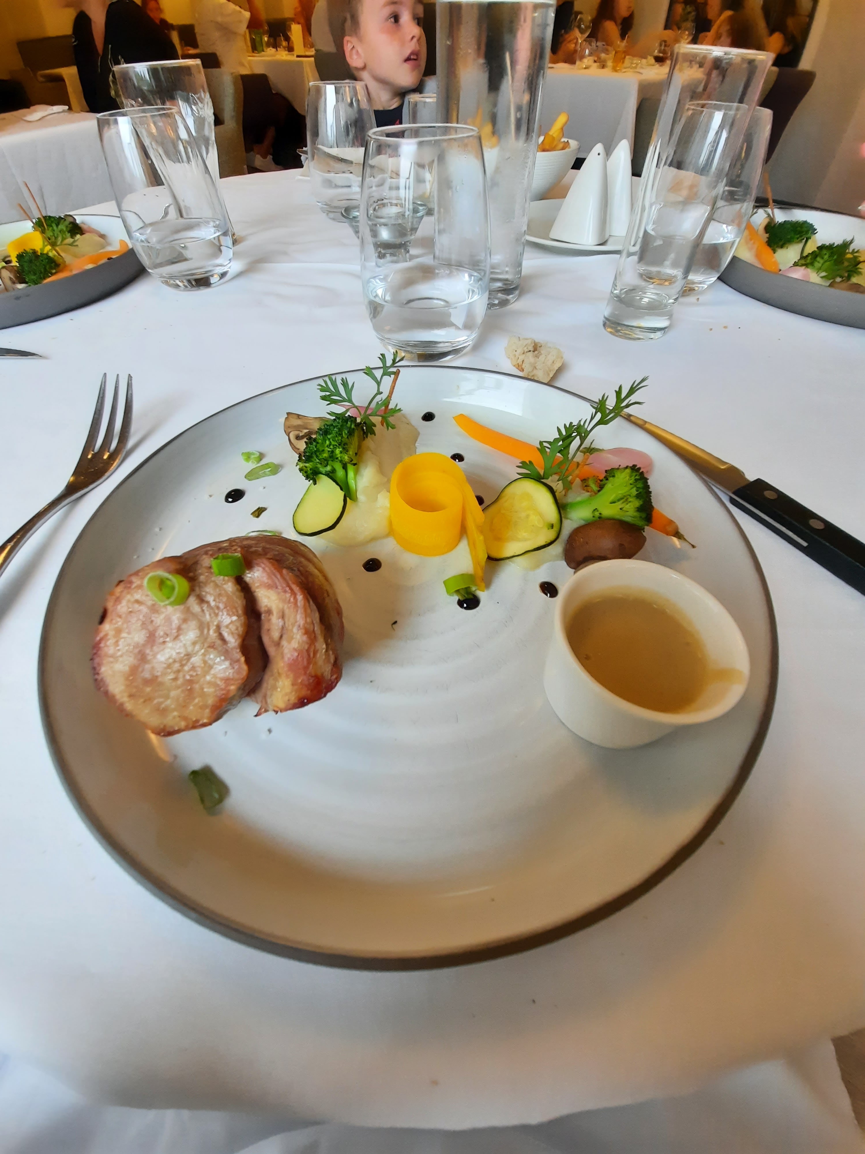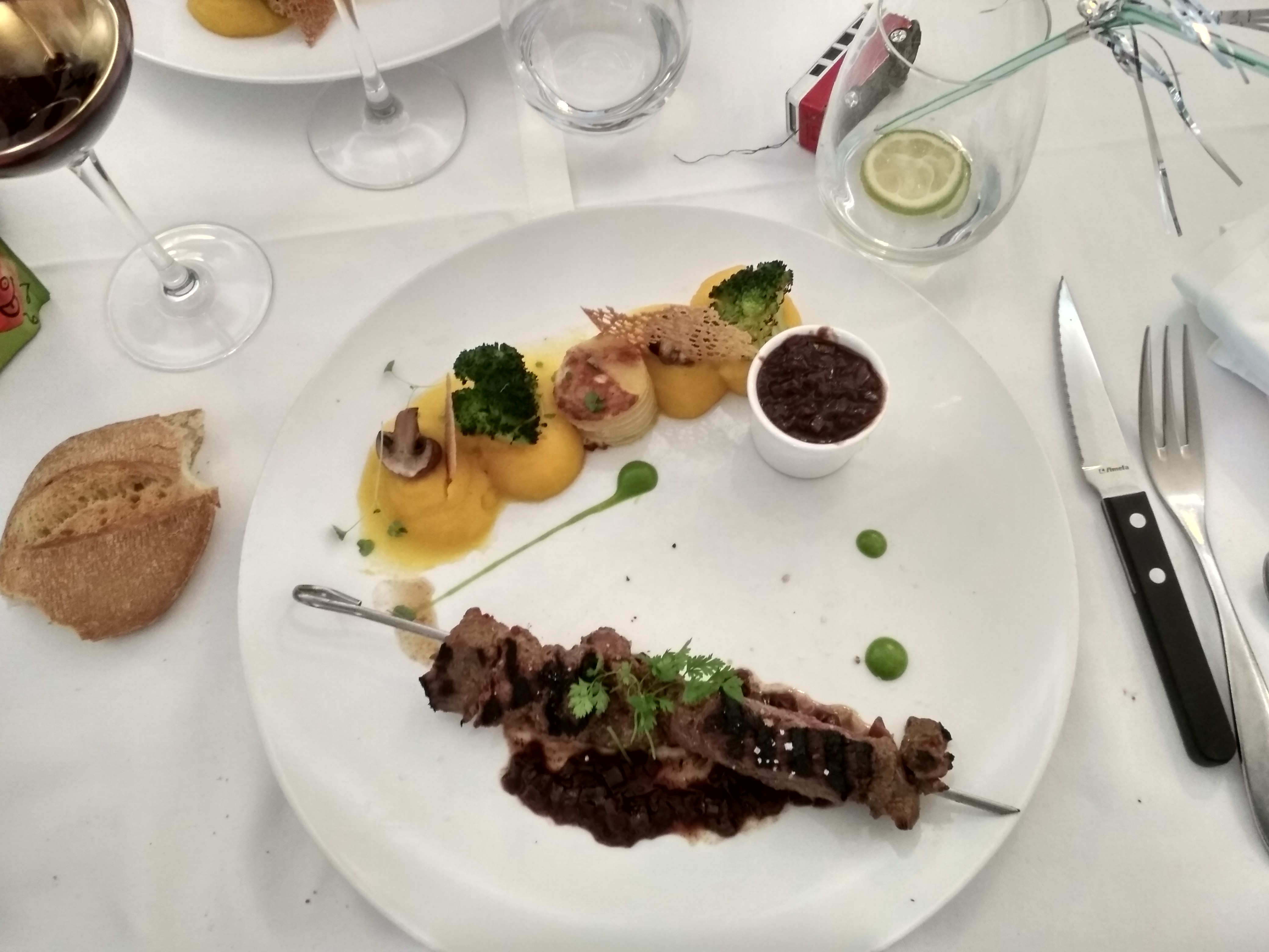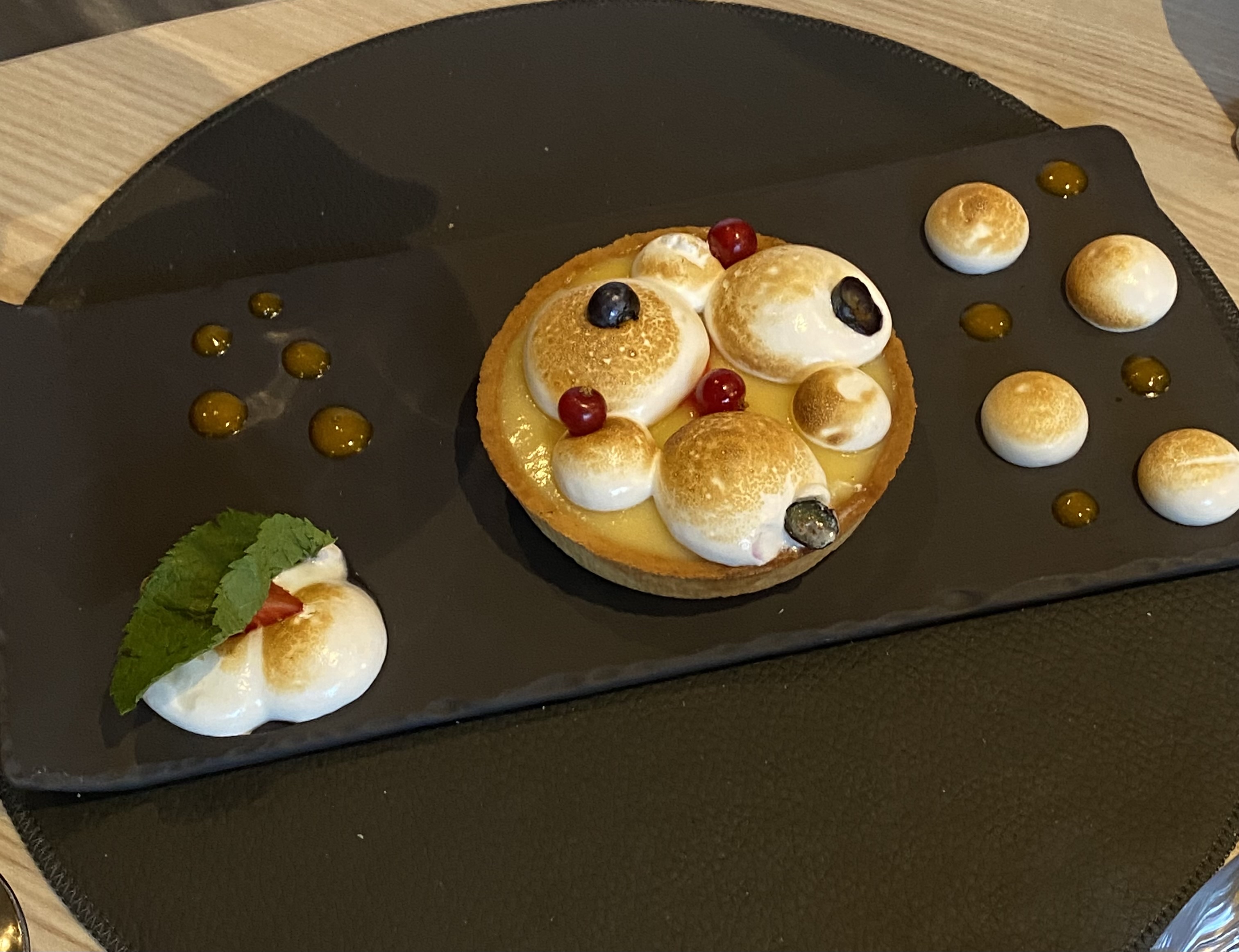 Joli restaurant, assiettes bien présentées, amuse-gueules avec l'apéritif et petits gâteaux à la fin du repas. Mon fils a eu une glace avec un cierge magique pour son anniversaire. Excellent repas.