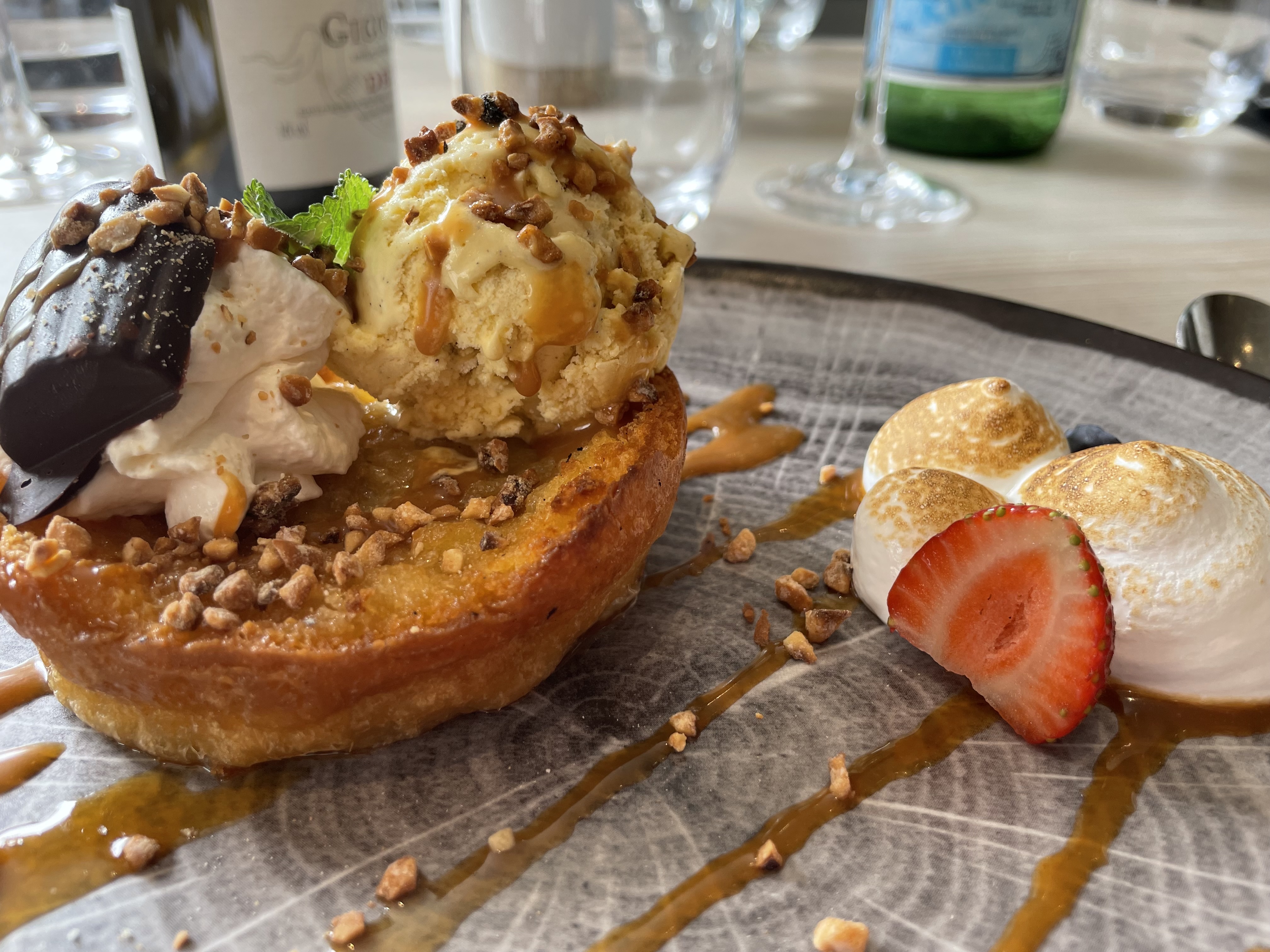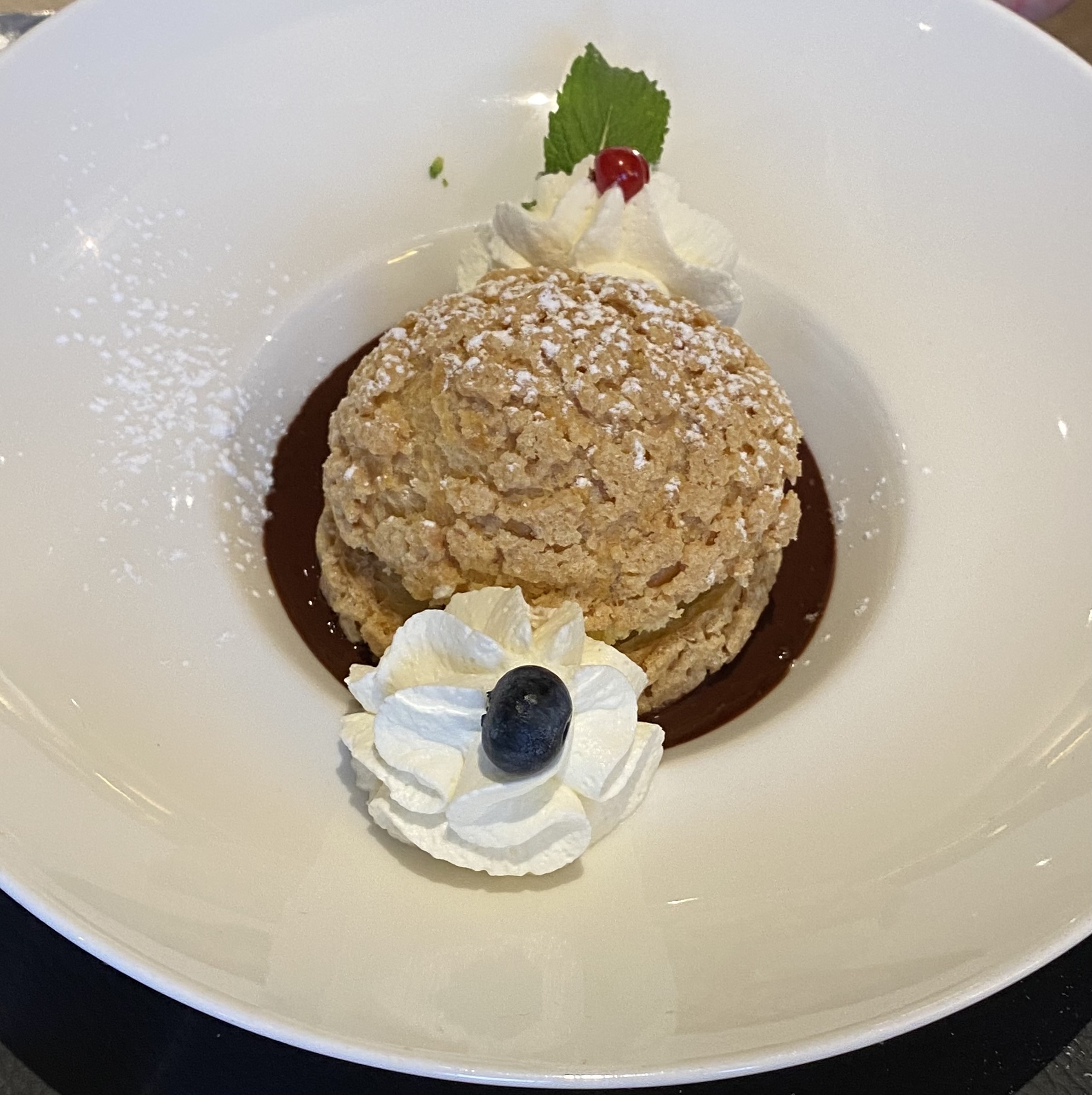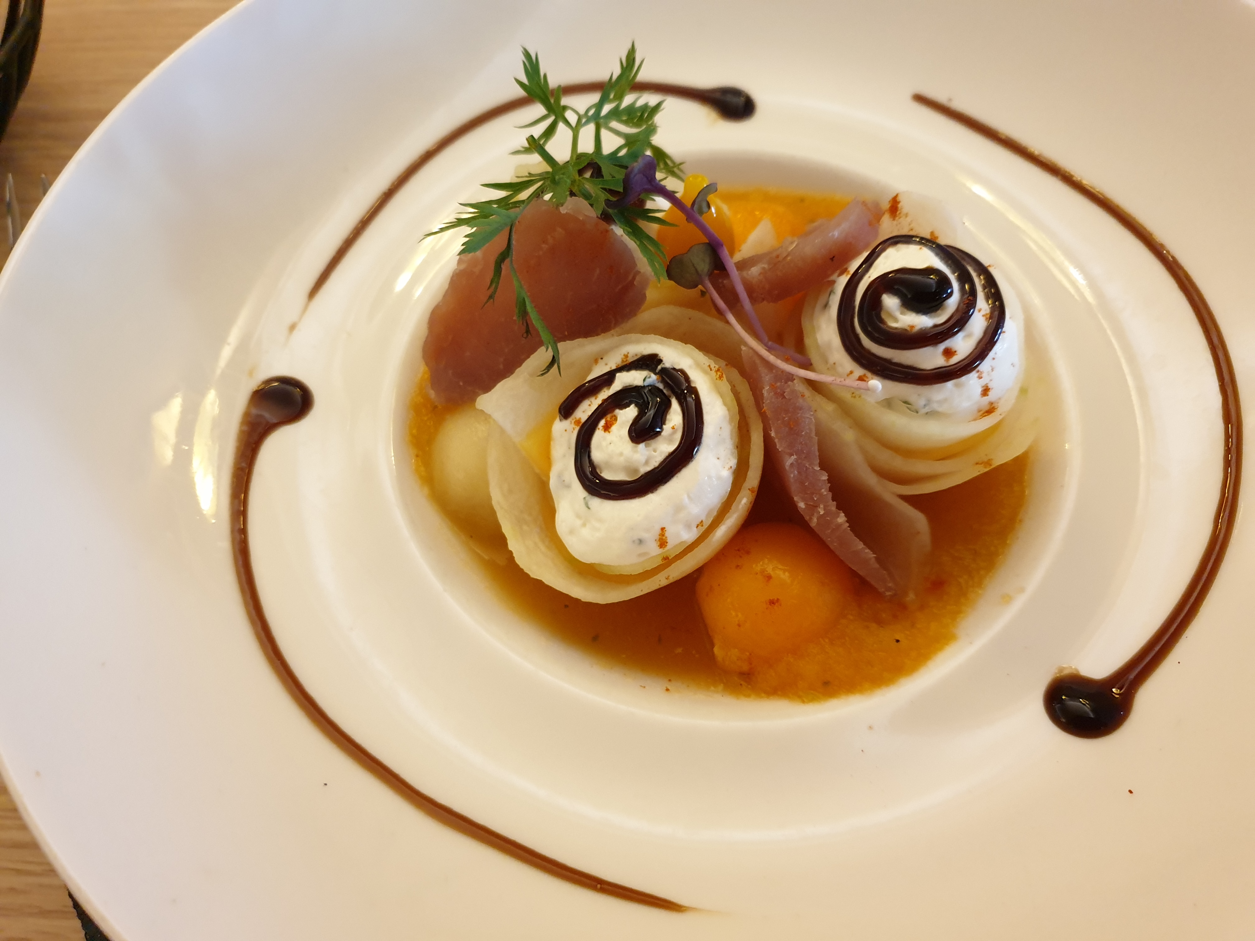 Joli restaurant, assiettes bien présentées, amuse-gueules avec l'apéritif et petits gâteaux à la fin du repas. Mon fils a eu une glace avec un cierge magique pour son anniversaire. Excellent repas.